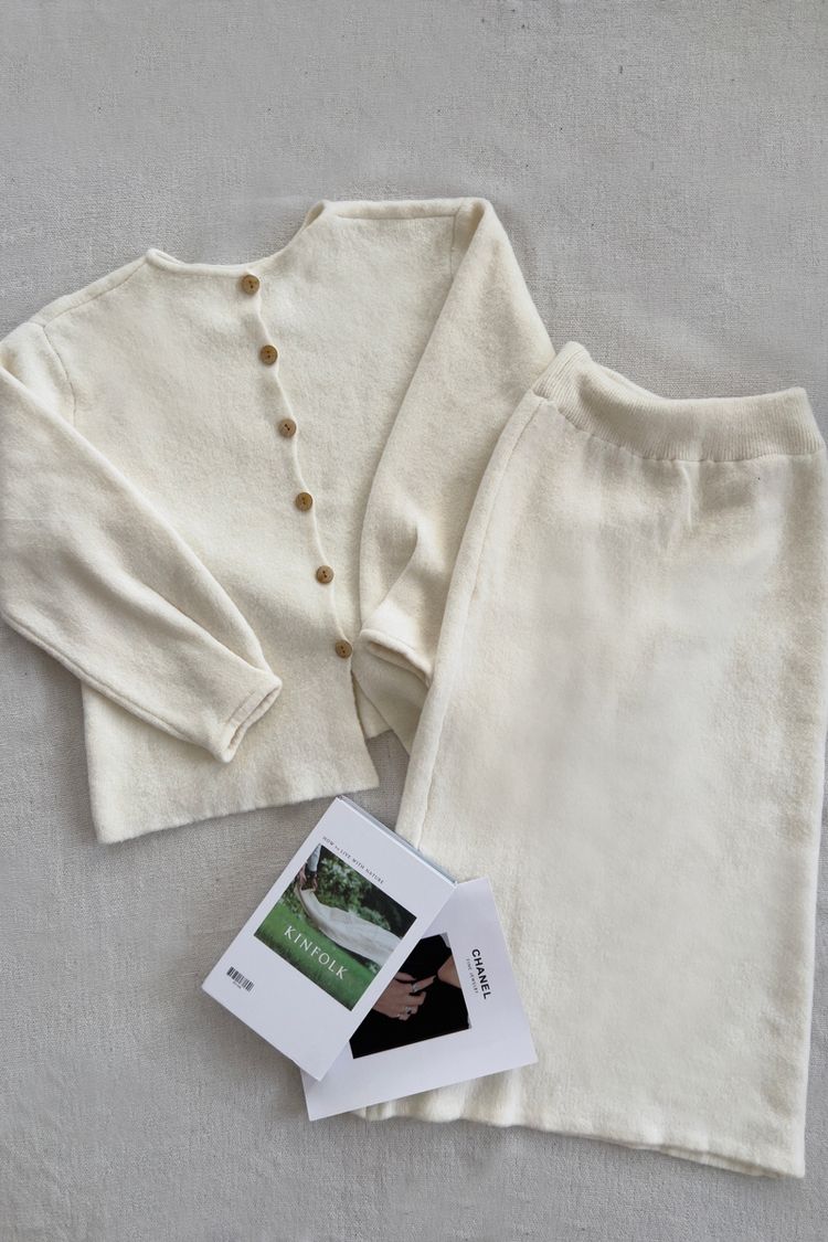 唯美女神排釦針織套裝*1色(上衣+裙子)