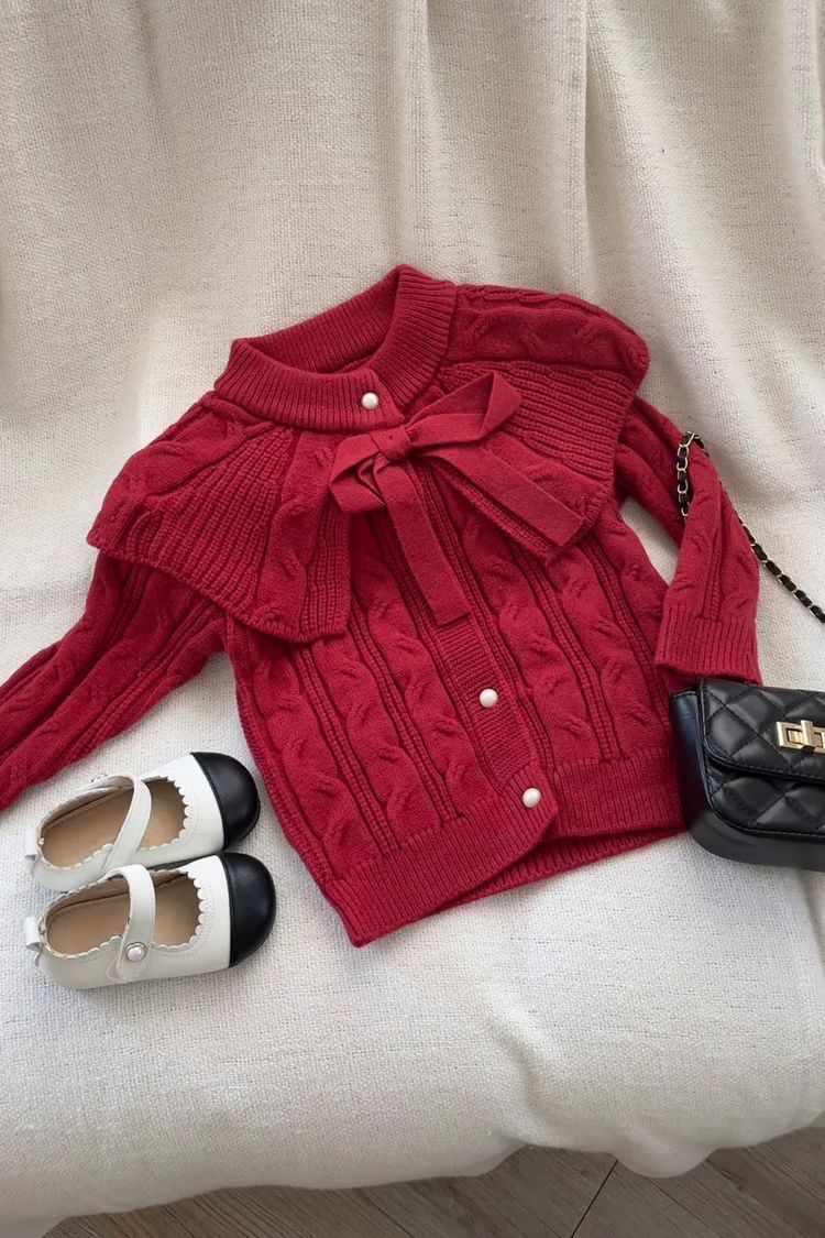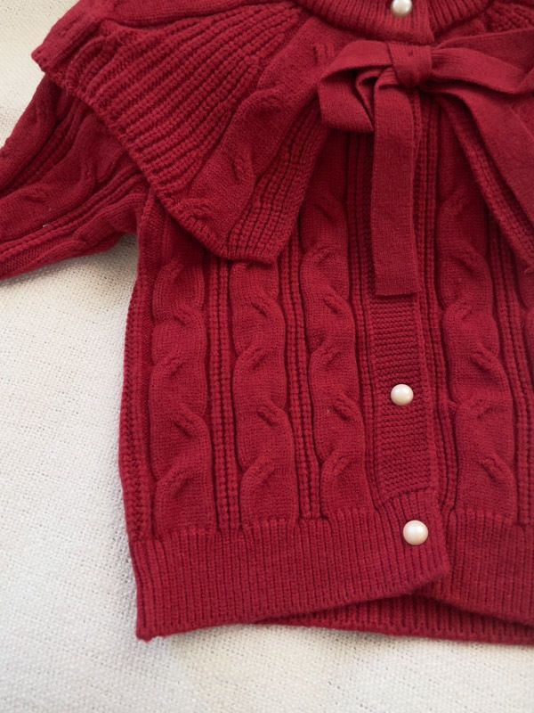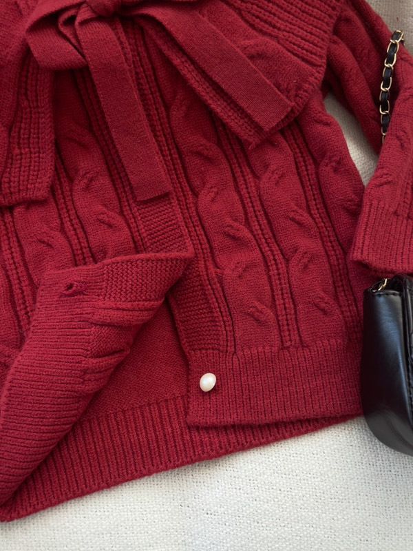 小氣質翻領蝴蝶結排扣針織上衣/外套*1色