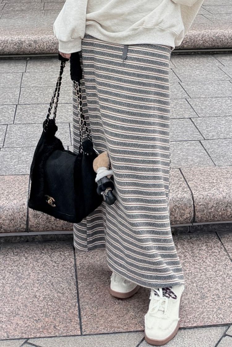 暖暖毛呢針織抽繩條文裙*1色