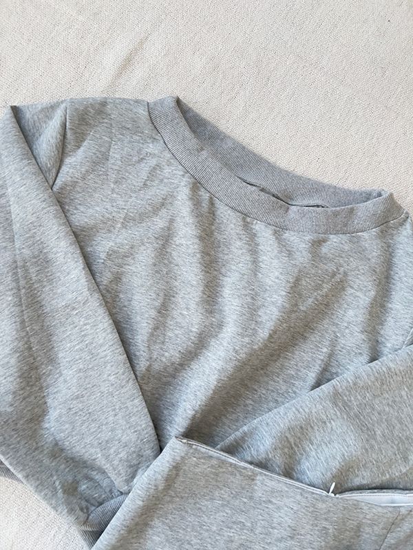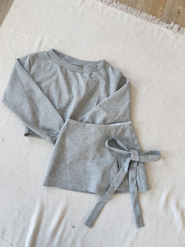 【限量現貨】休閒大圓領長袖套裝*1色(上衣+短裙/附綁帶)