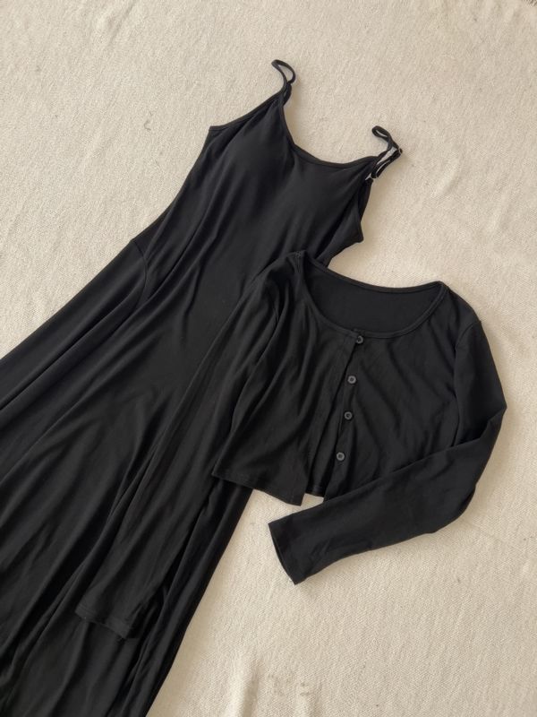 【限量現貨】氣質細肩背心洋裝+長袖罩衫(含胸墊/肩帶可調)*1色