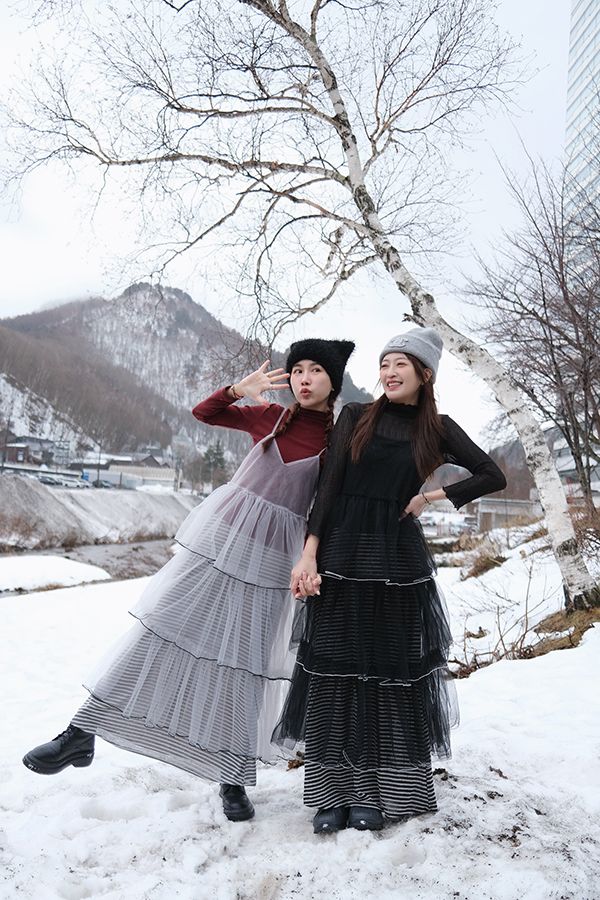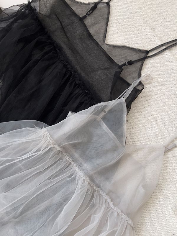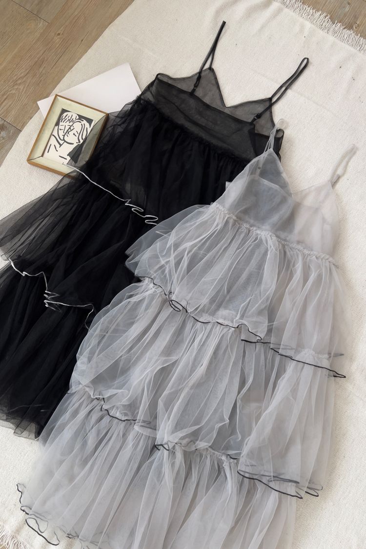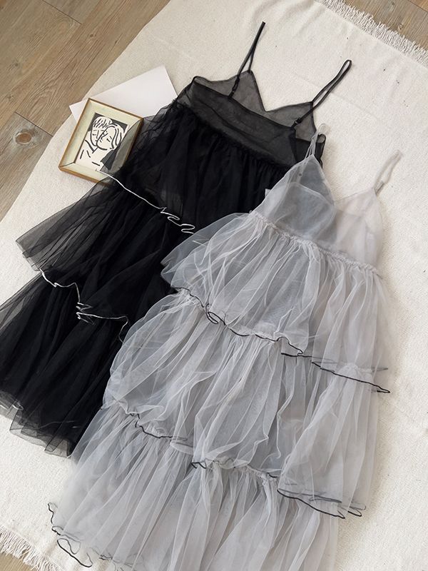 細肩網紗蛋糕疊穿背心長洋*2色