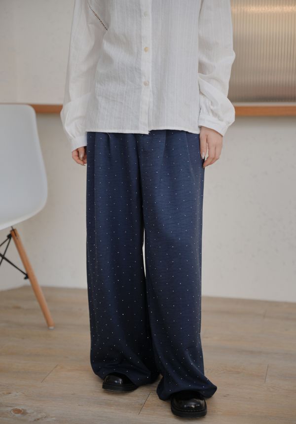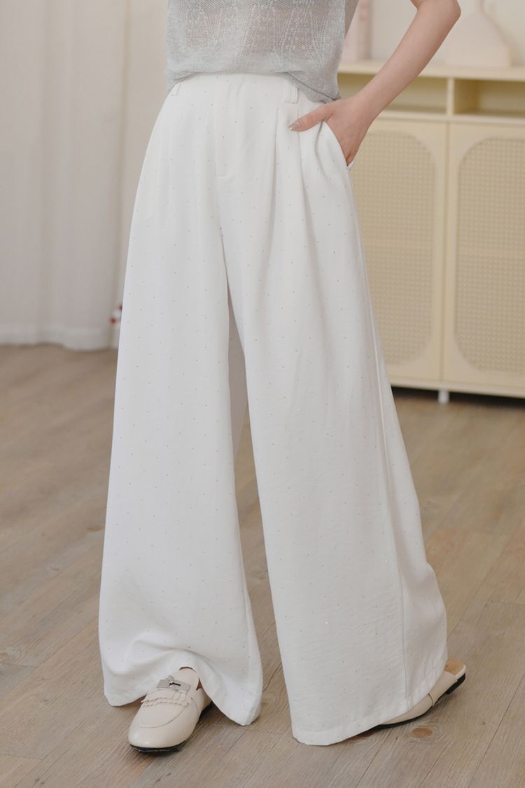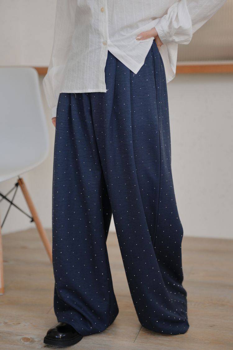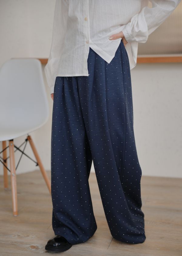 閃閃水鑽後鬆緊寬褲*3色
