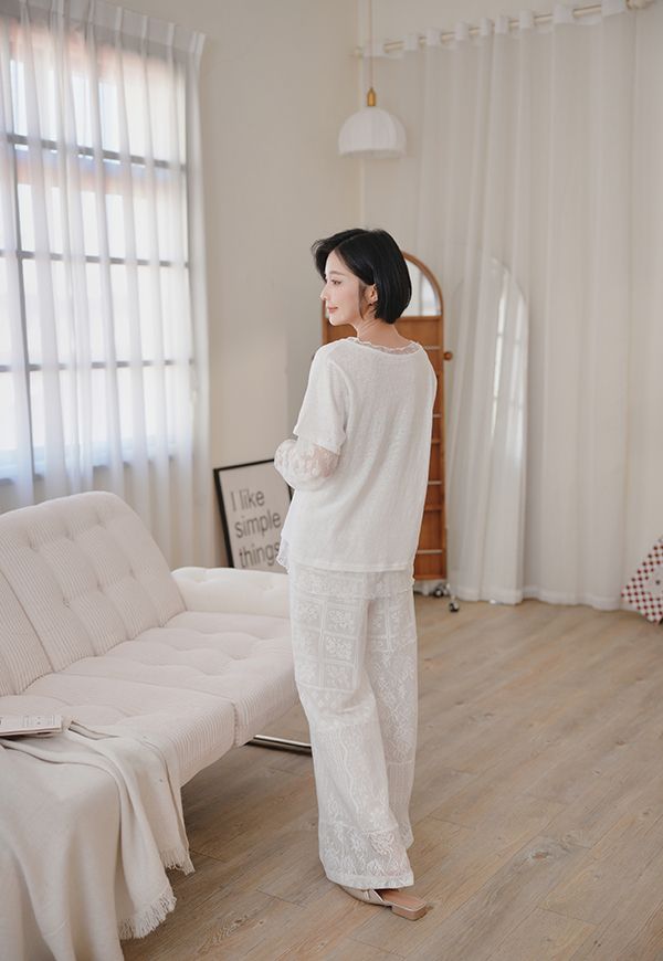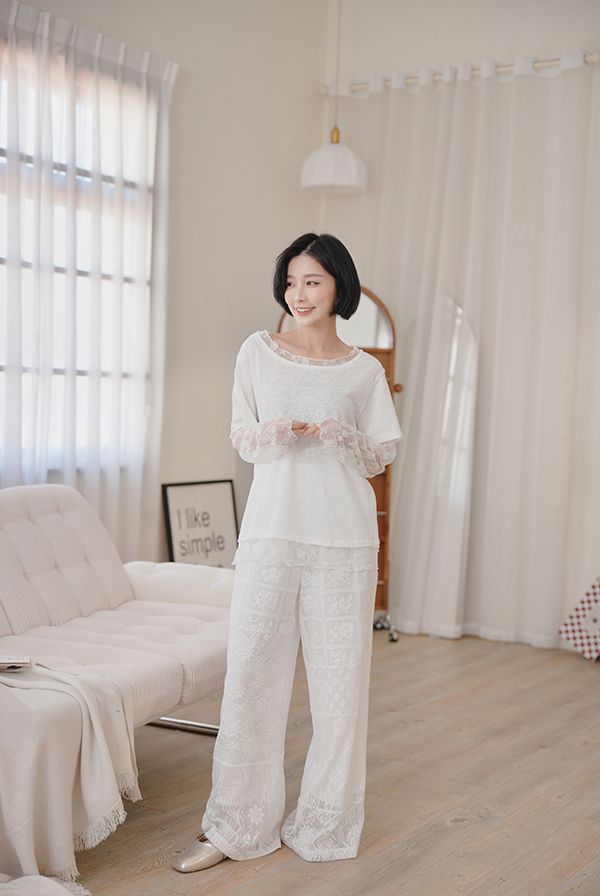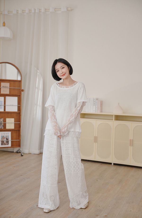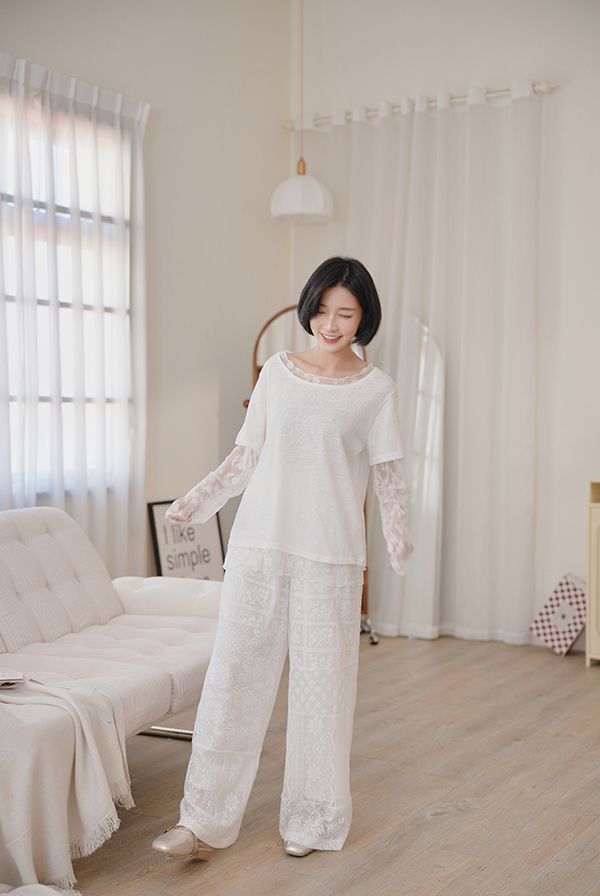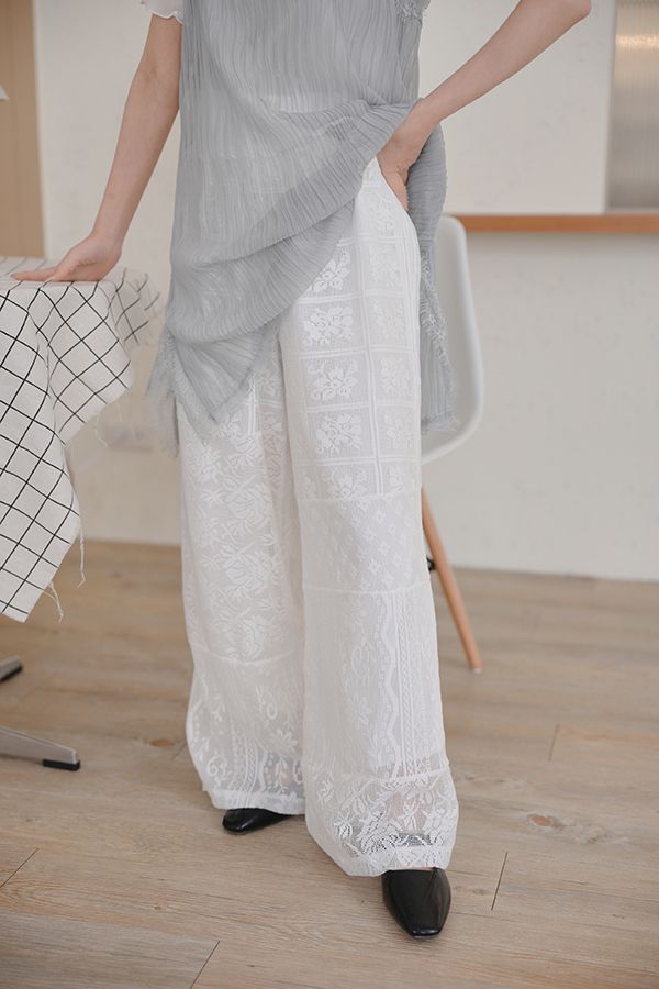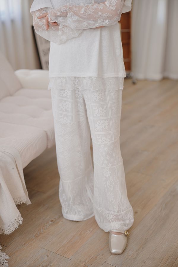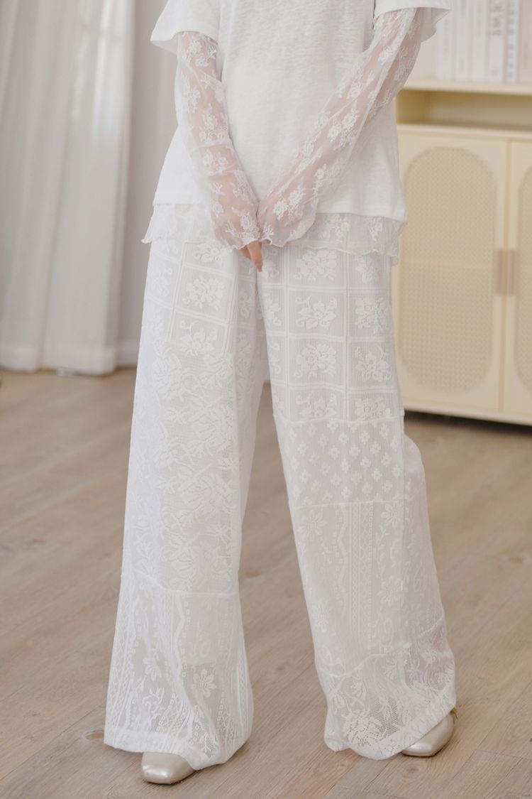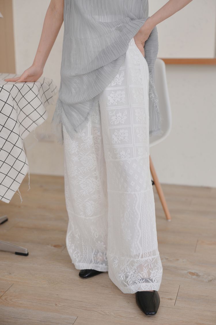 不對稱蕾絲拼接褲*1色