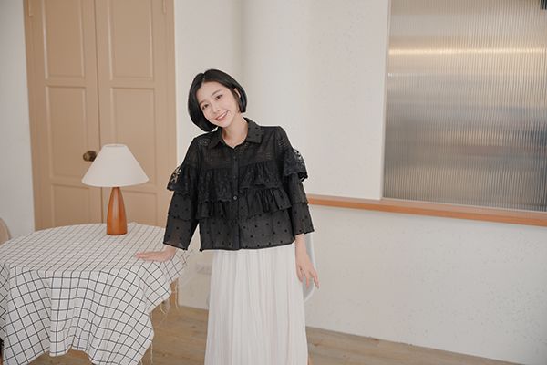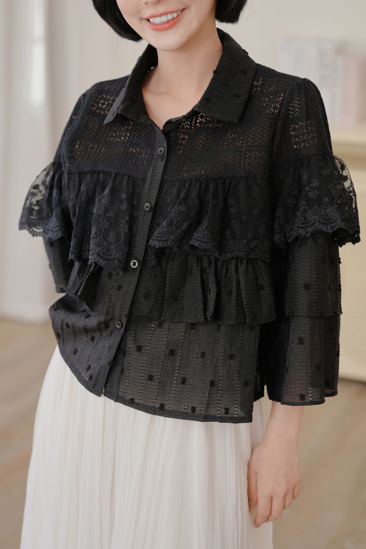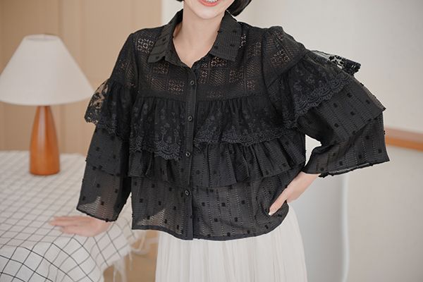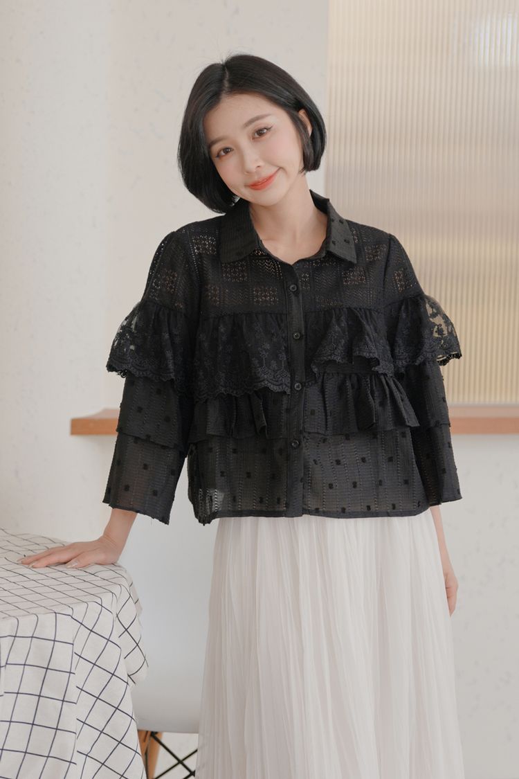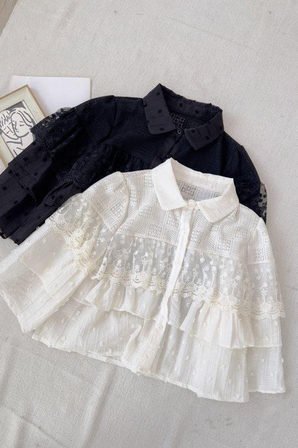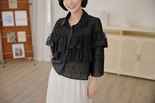 立體蕾絲縷空長袖上衣*2色