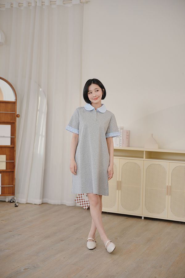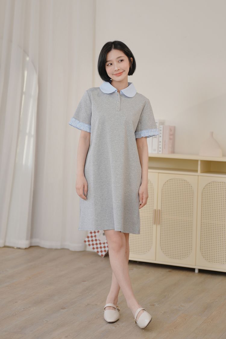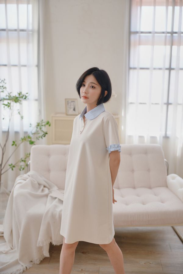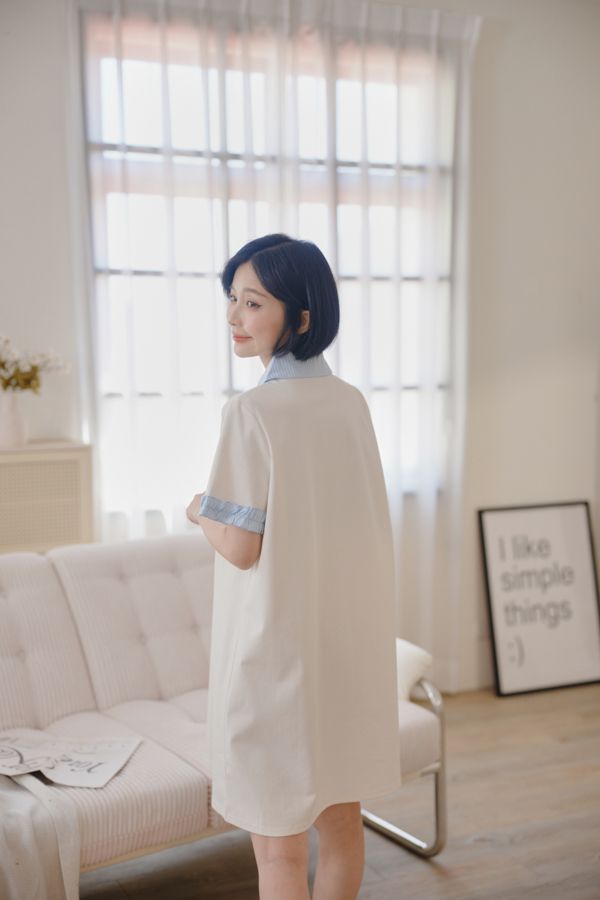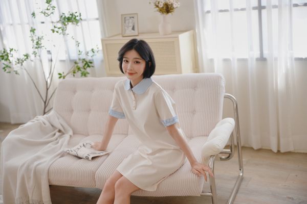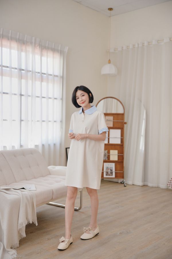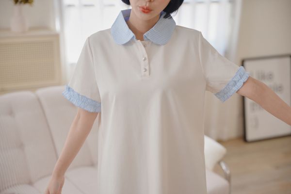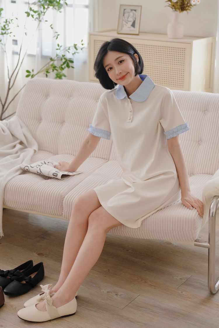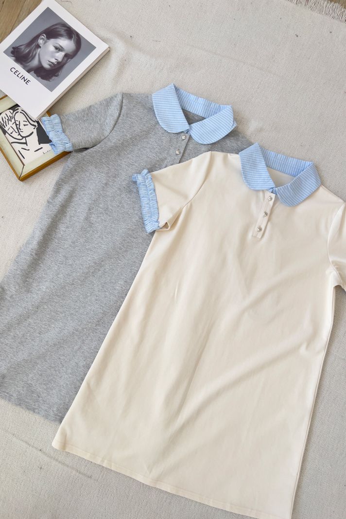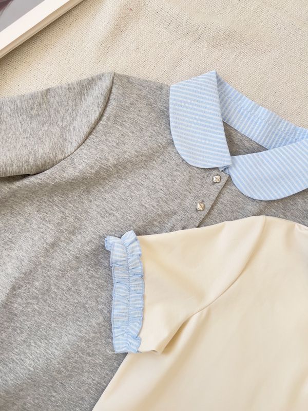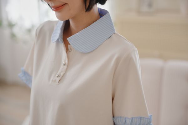 雲朵釦撞色領短洋*2色