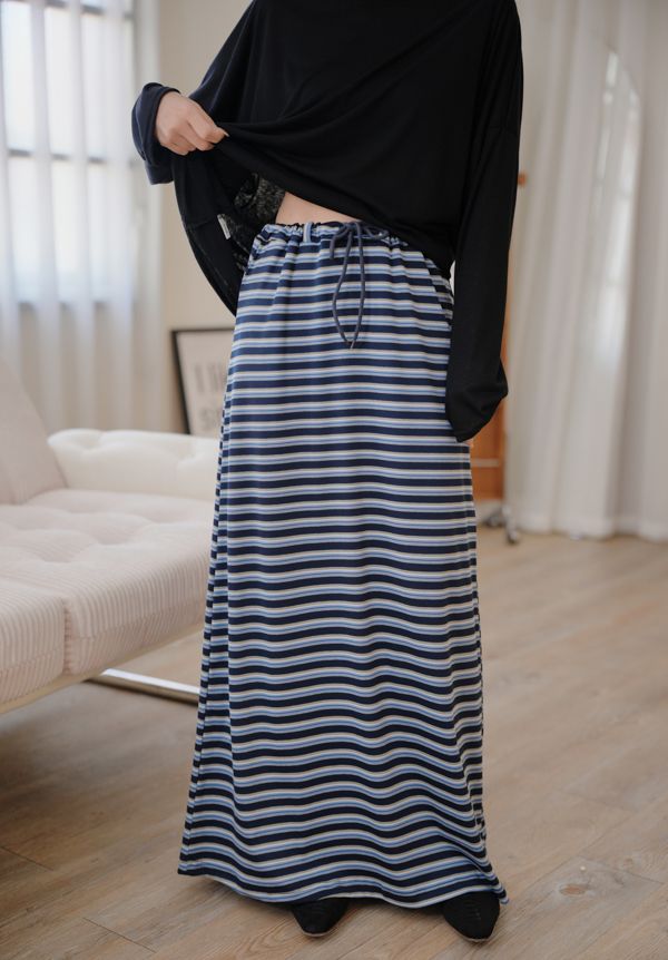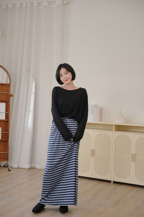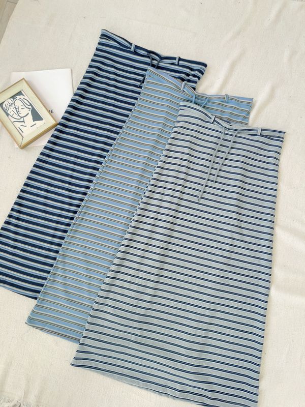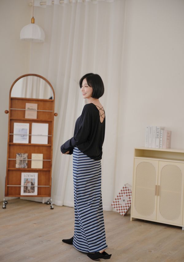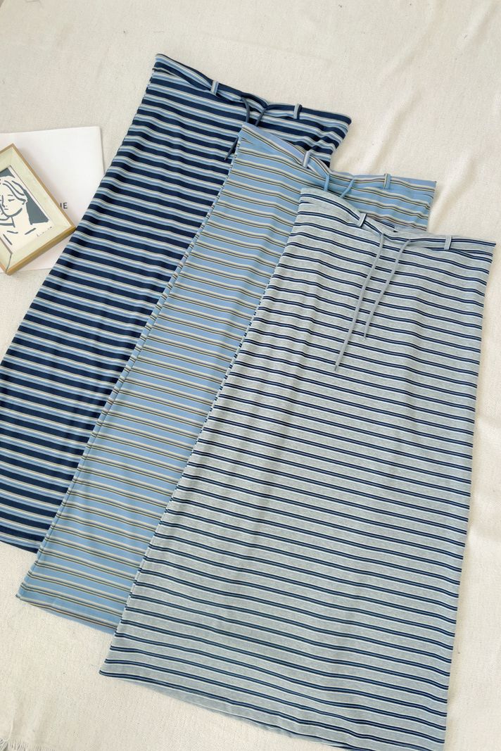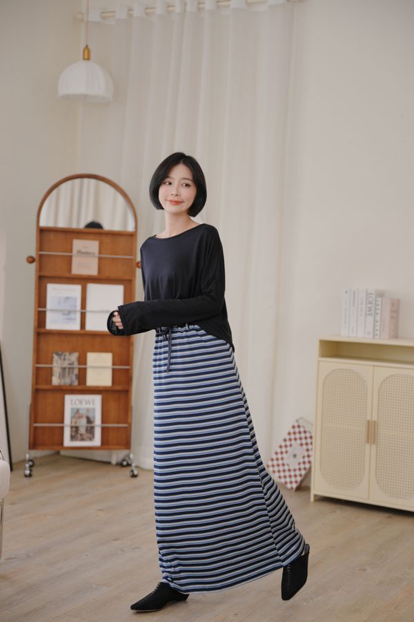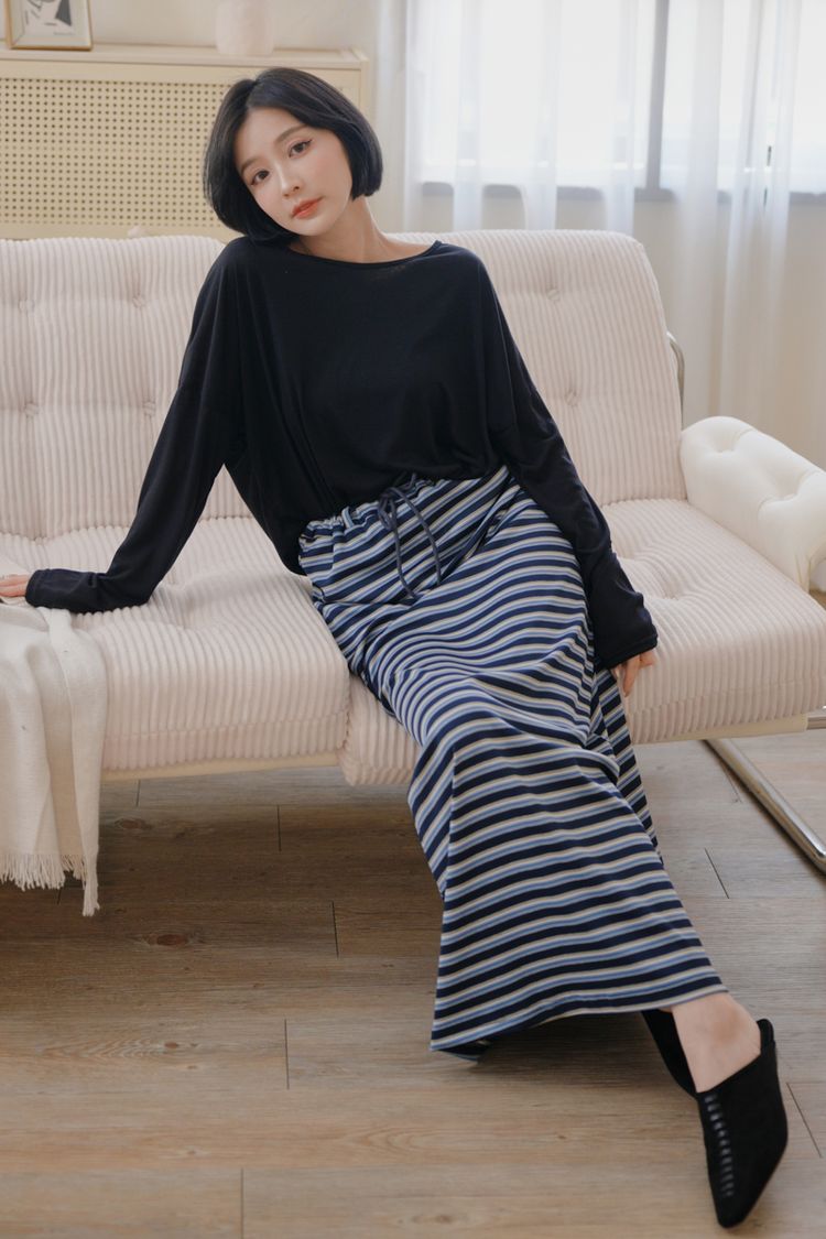 QQ棉彈性條紋抽繩長裙*3色