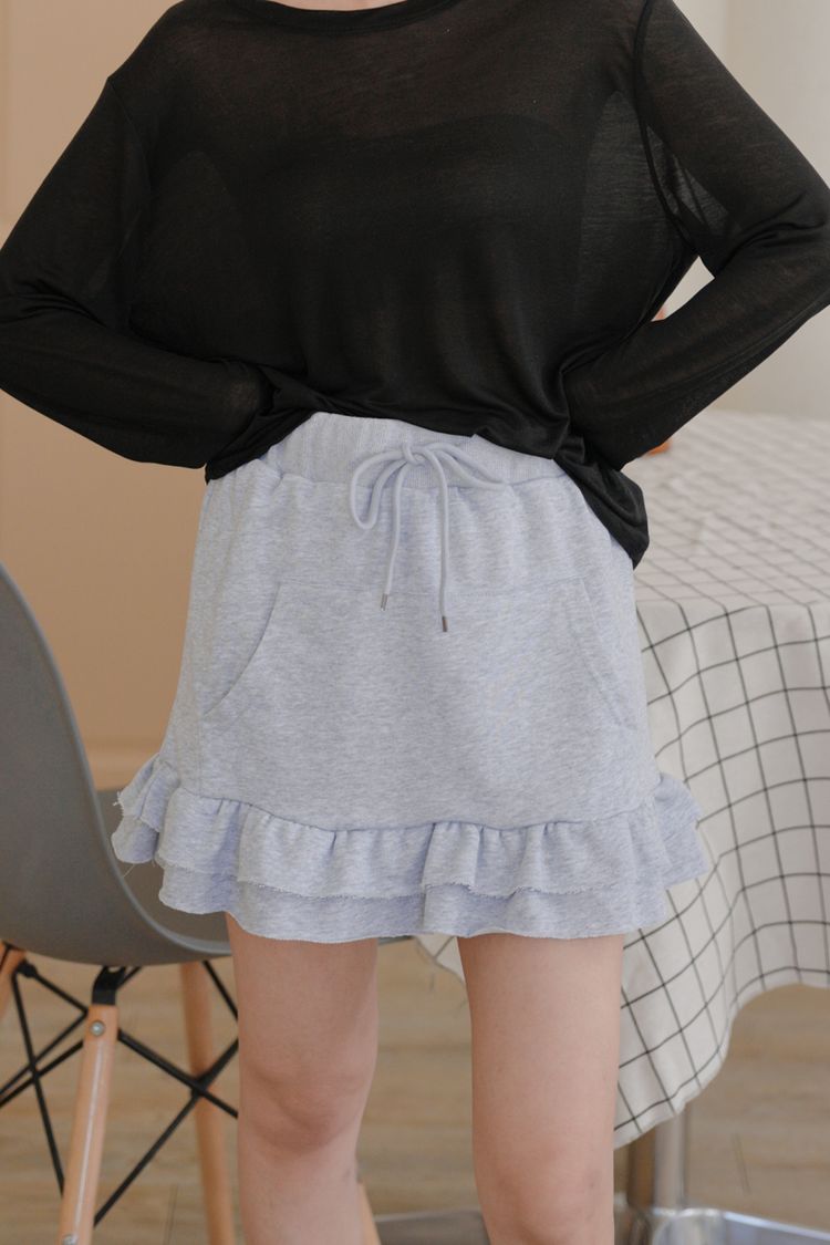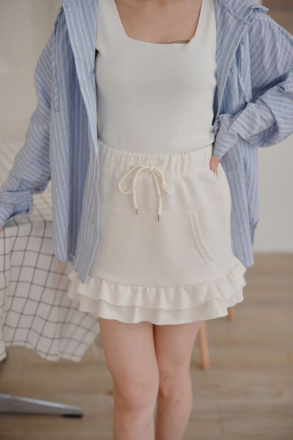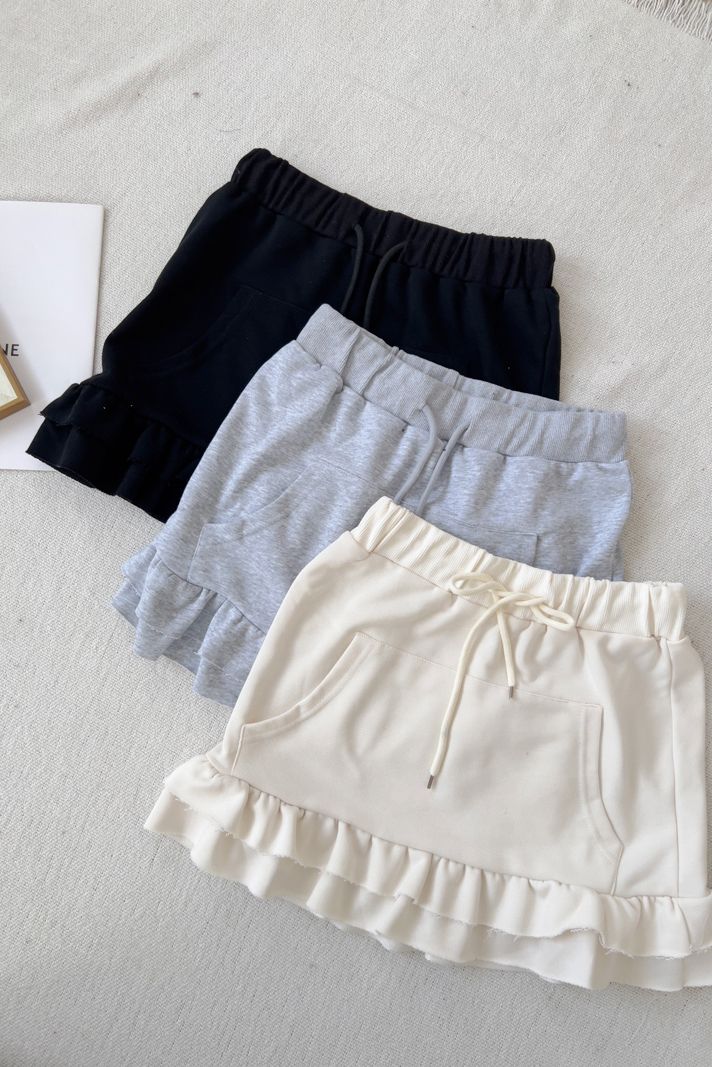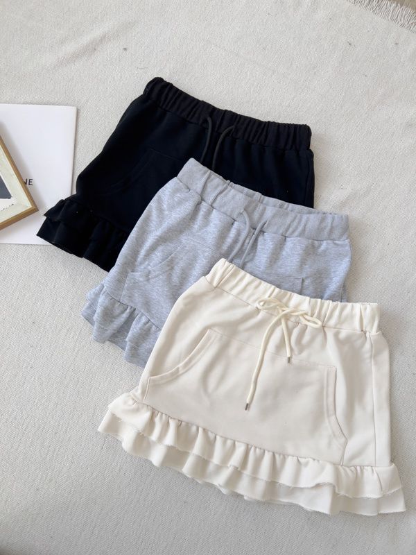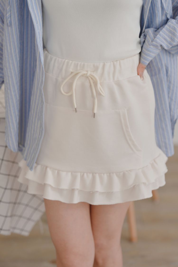 全鬆緊抽繩荷葉棉質短裙*3色