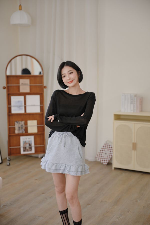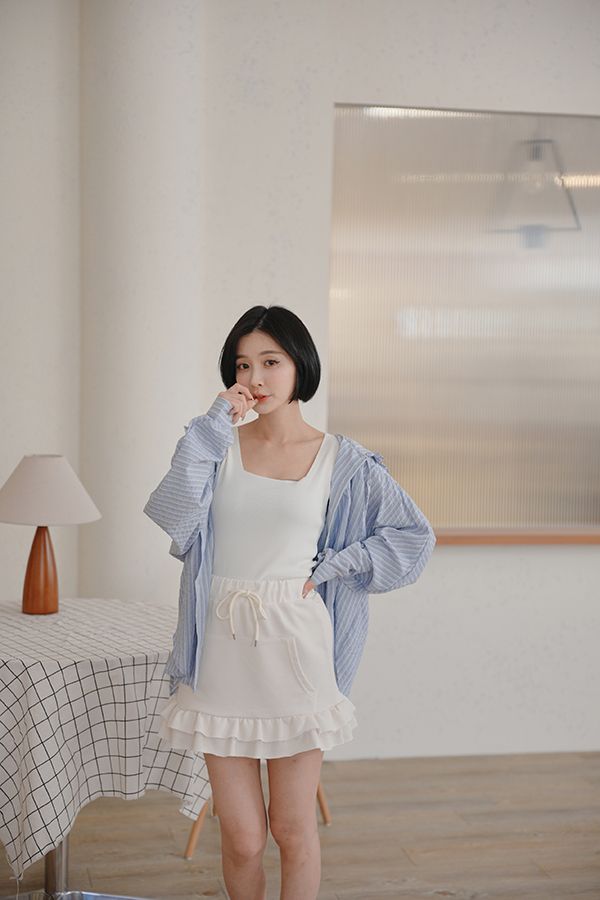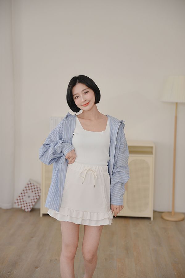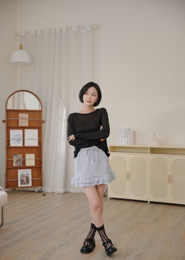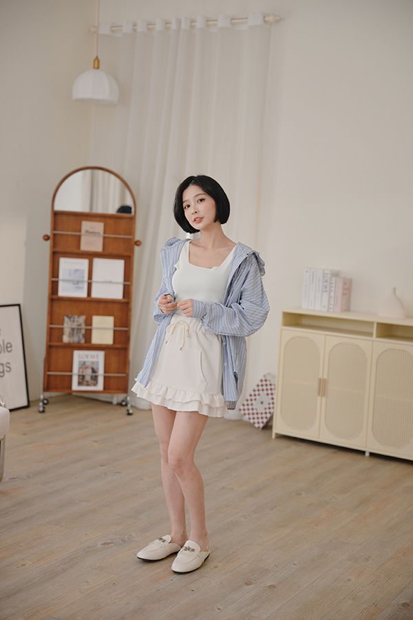 全鬆緊抽繩荷葉棉質短裙*3色