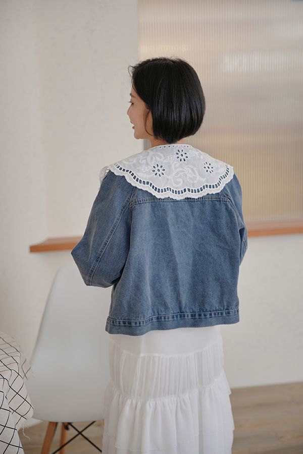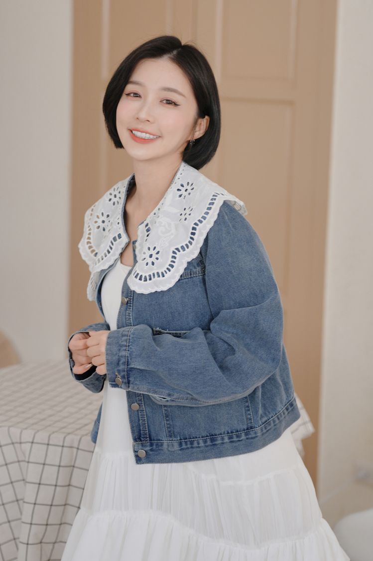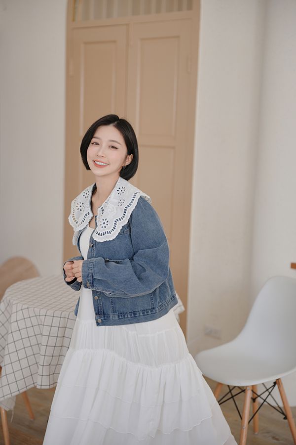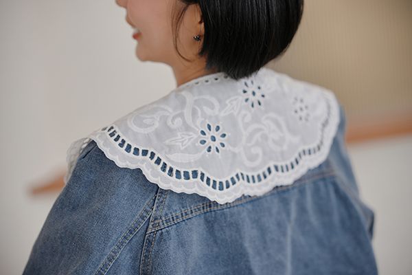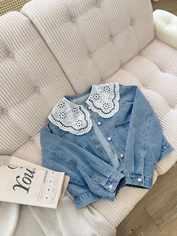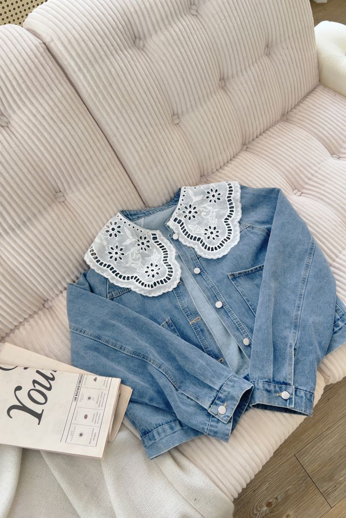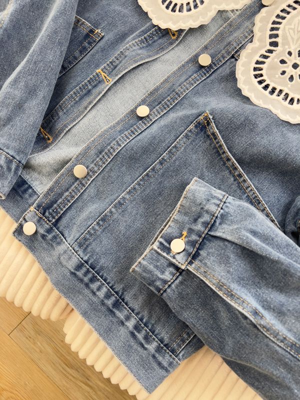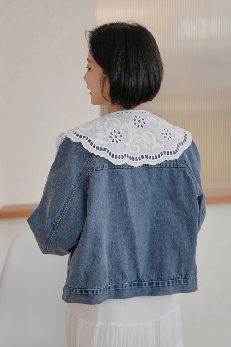 雕花領大口袋牛仔外套*1色
