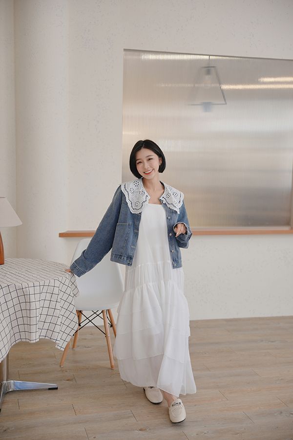 日系蛋糕層次細肩長洋*4色