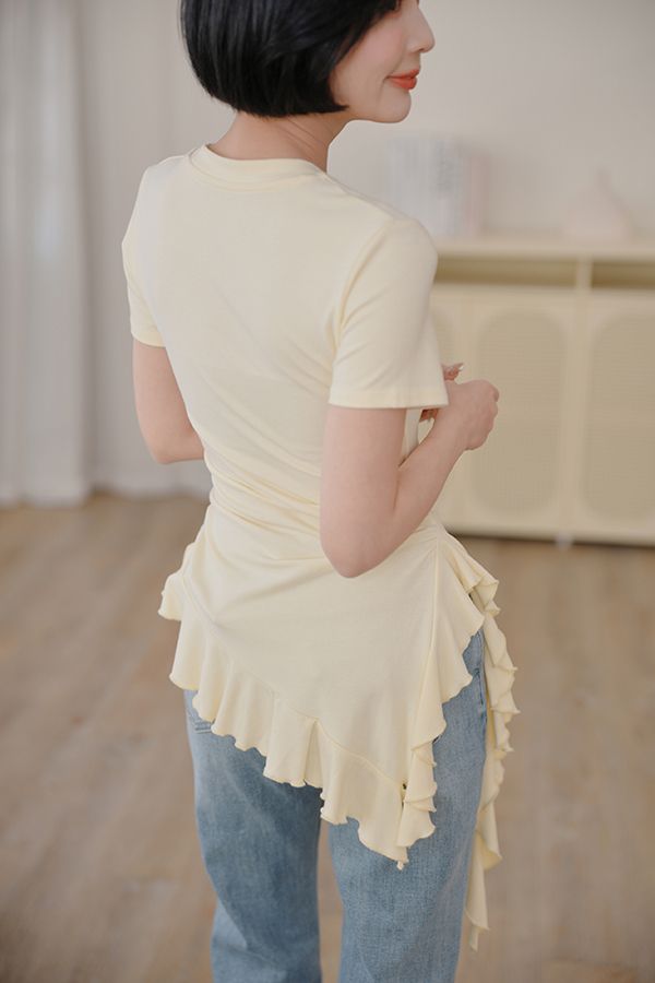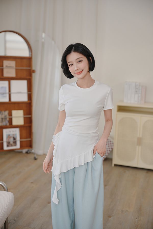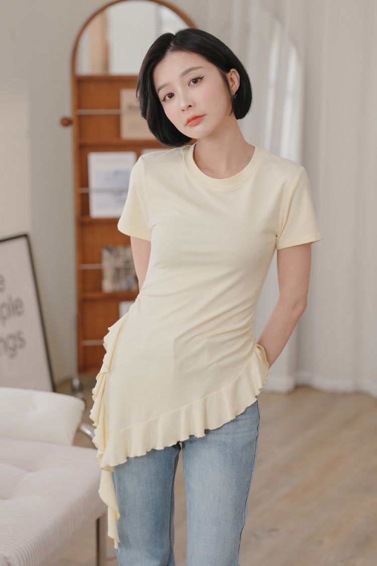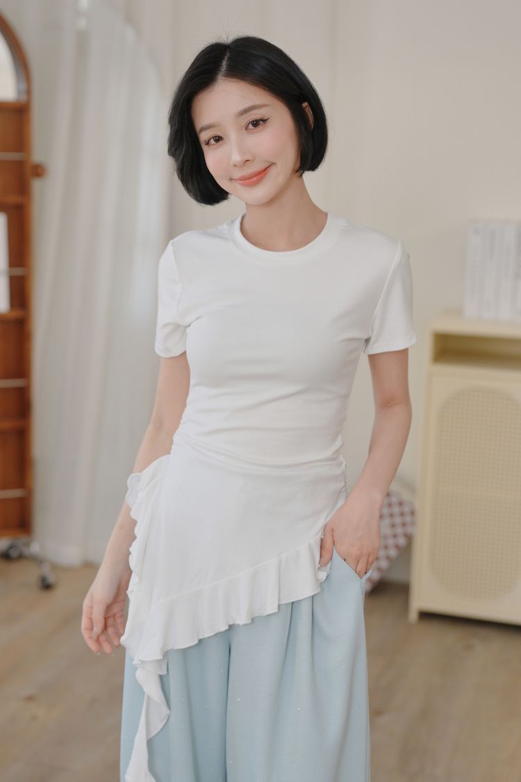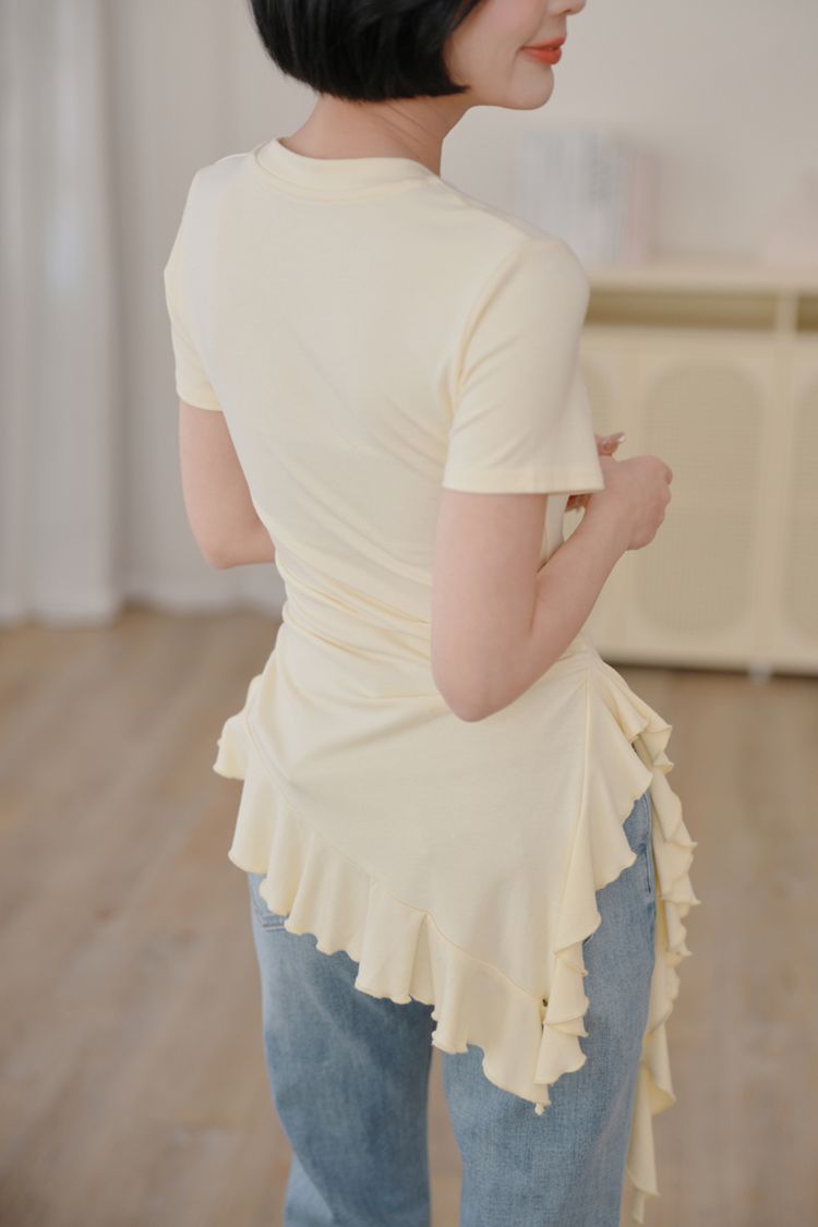 不規則荷葉下擺圓領上衣*3色