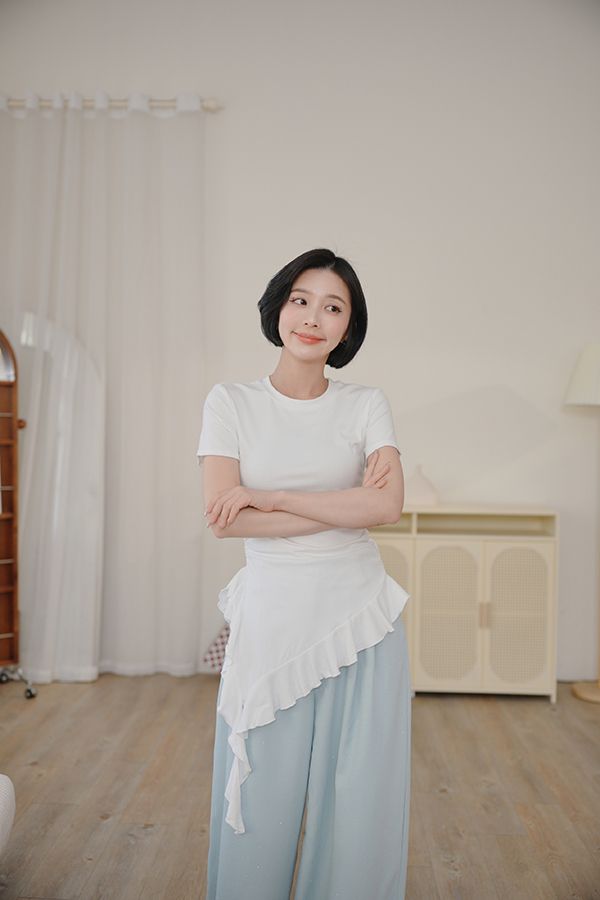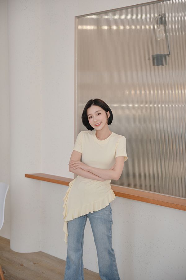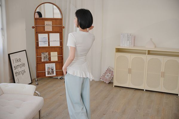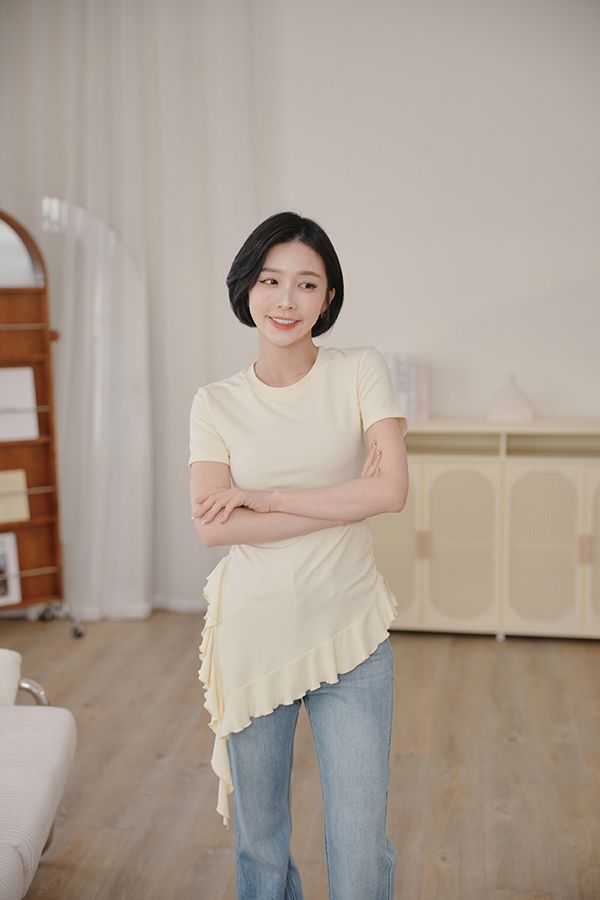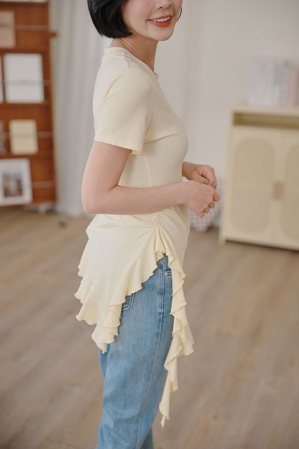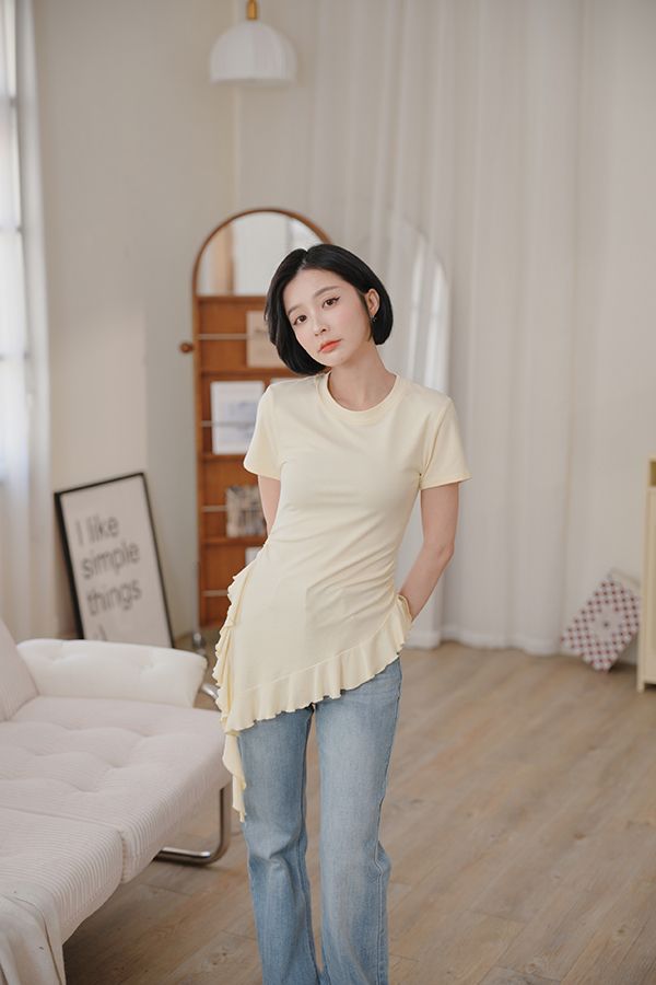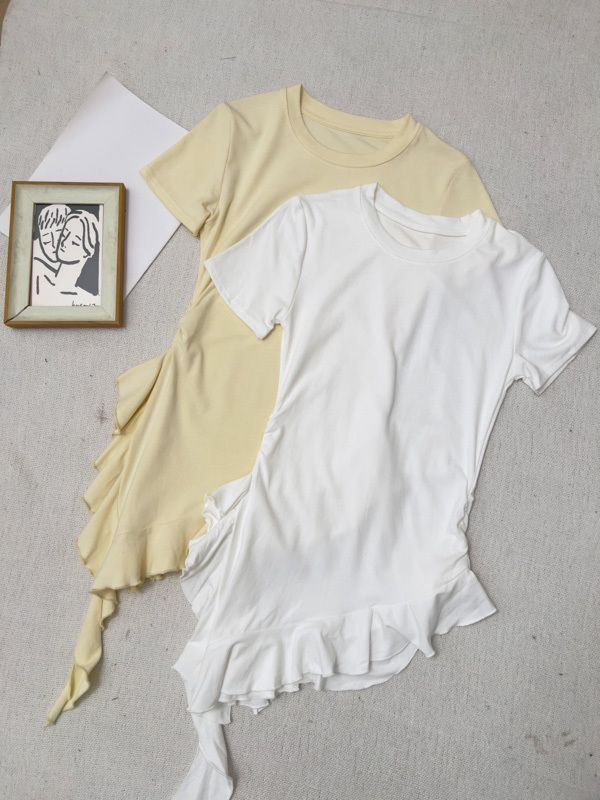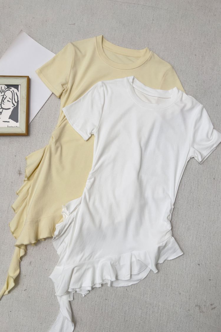 不規則荷葉下擺圓領上衣*3色