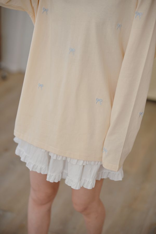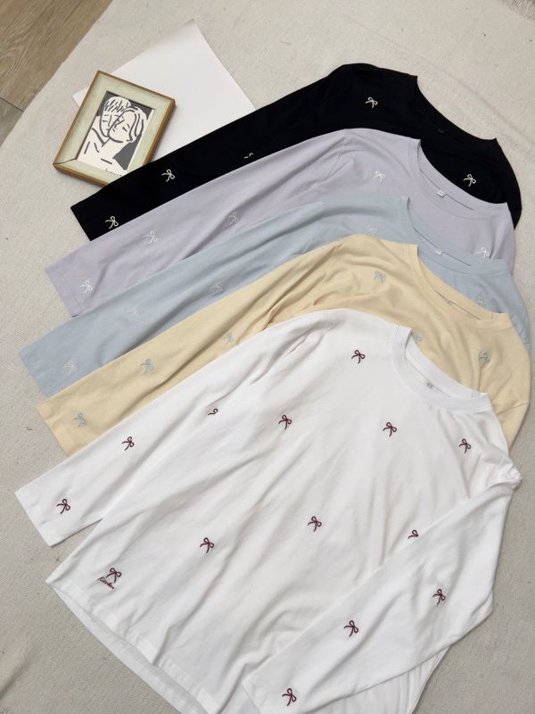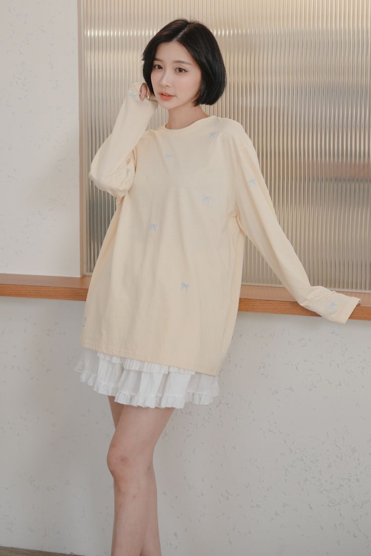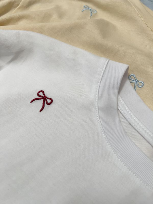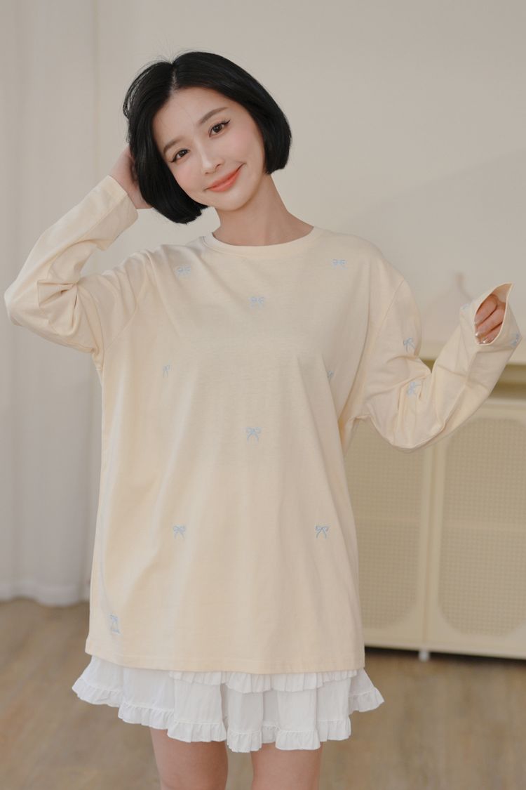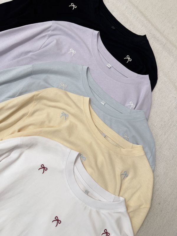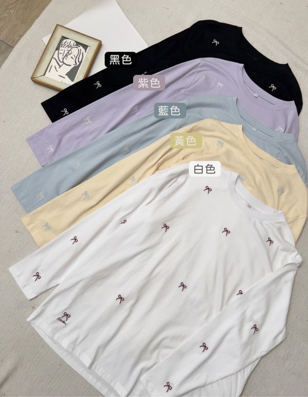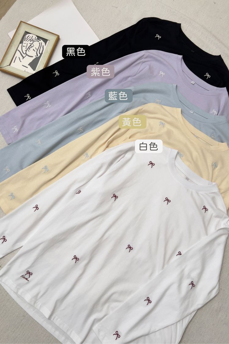 可愛蝴蝶結刺繡圓領長版T*5色