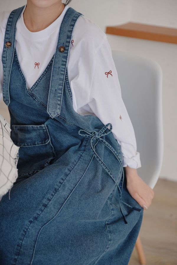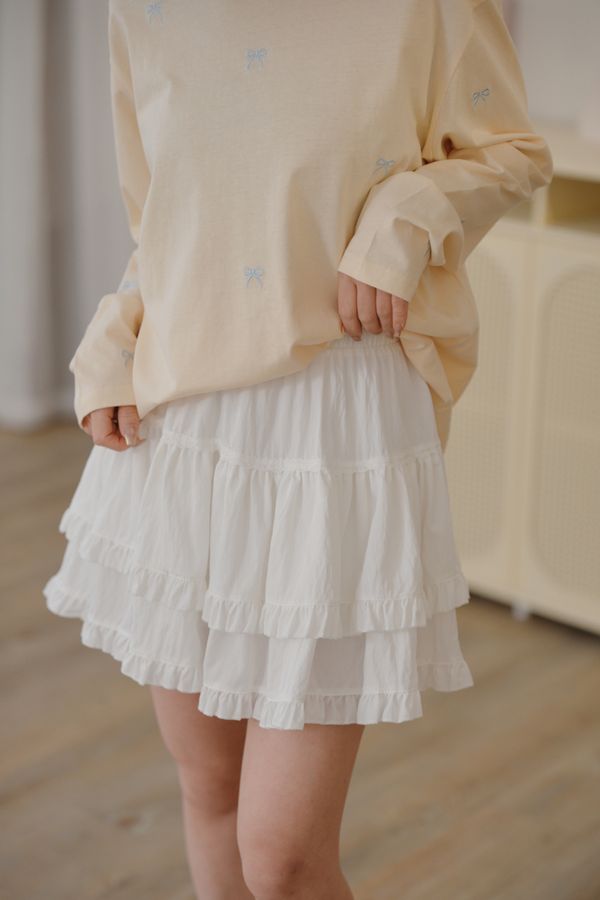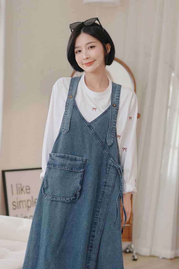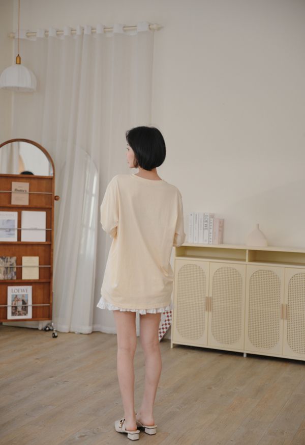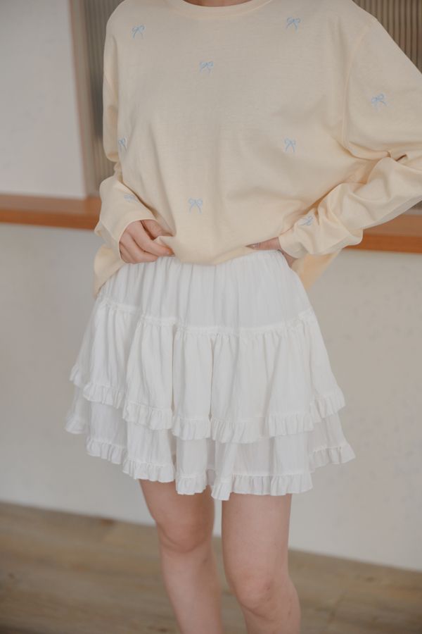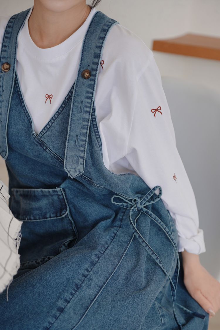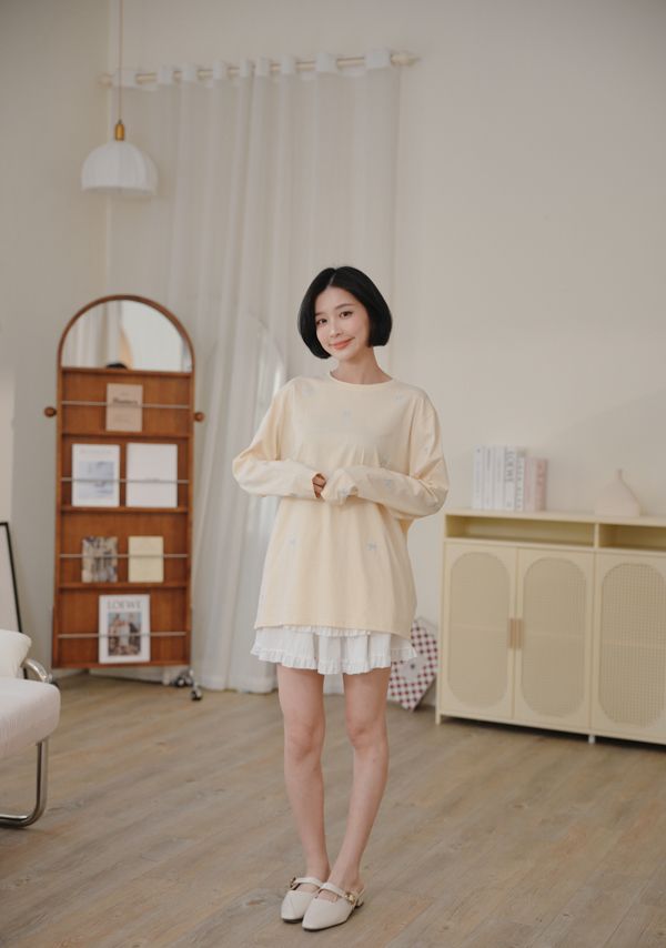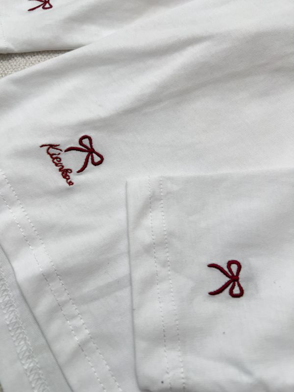 可愛蝴蝶結刺繡圓領長版T*5色