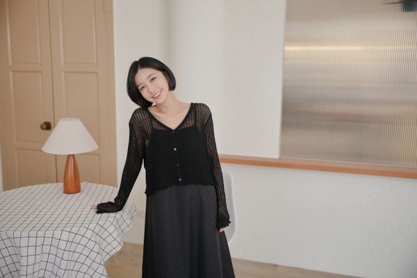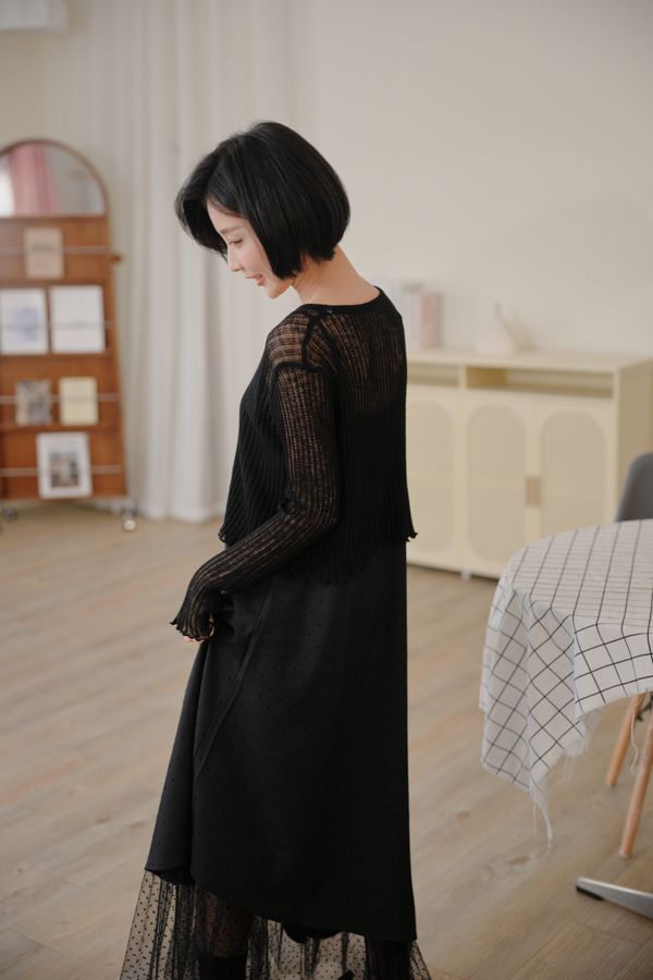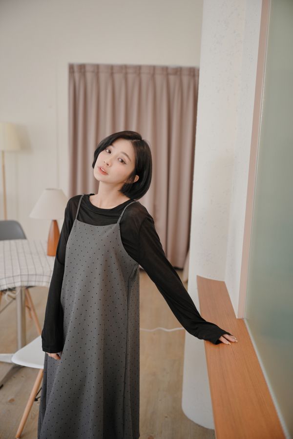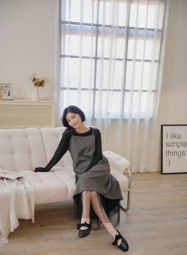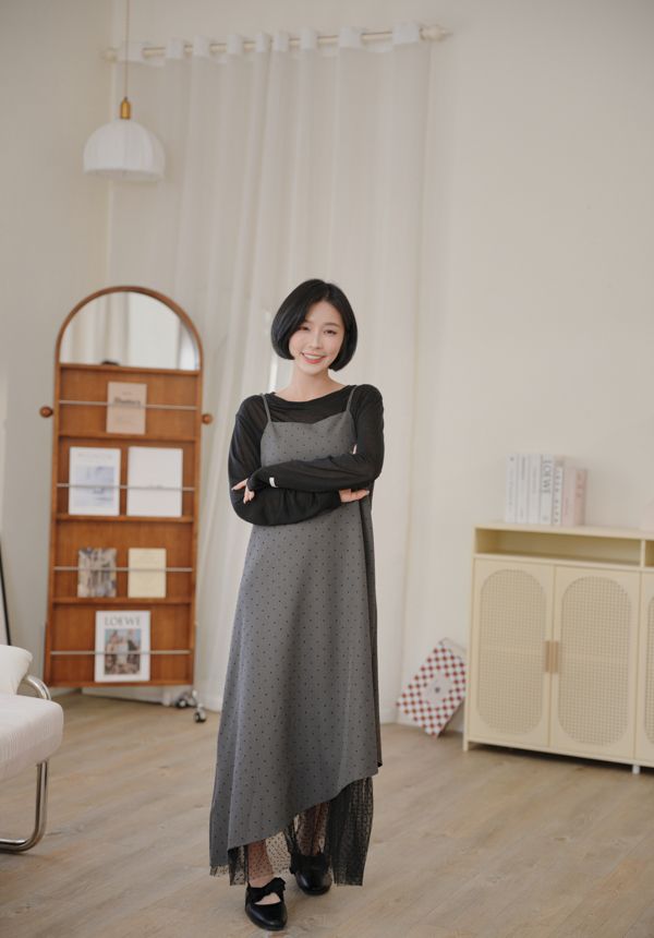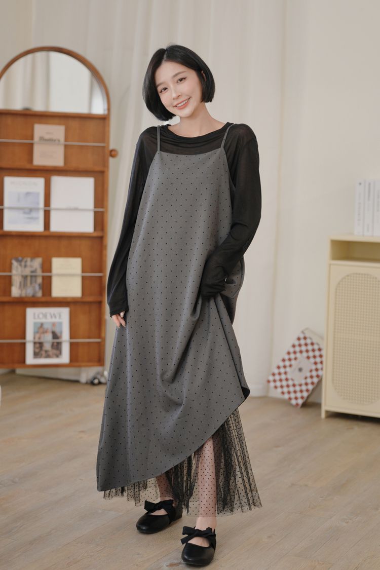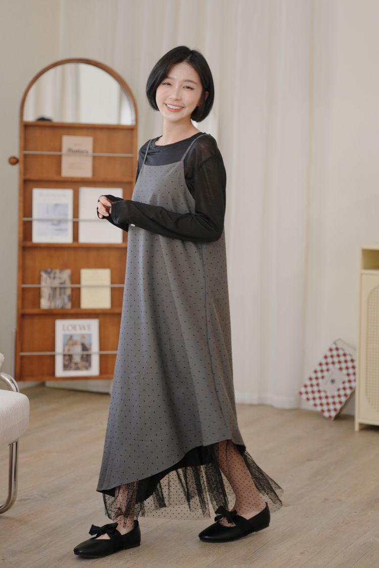 小圓點細肩內網紗長洋*2色