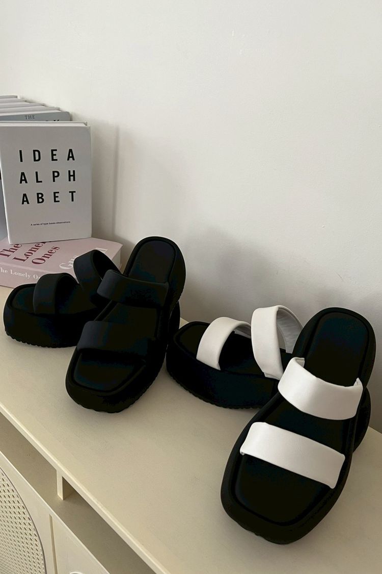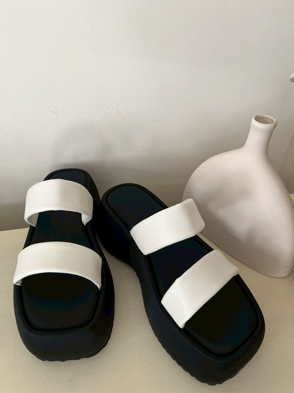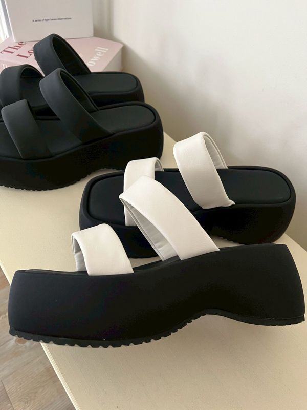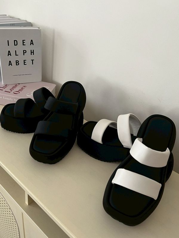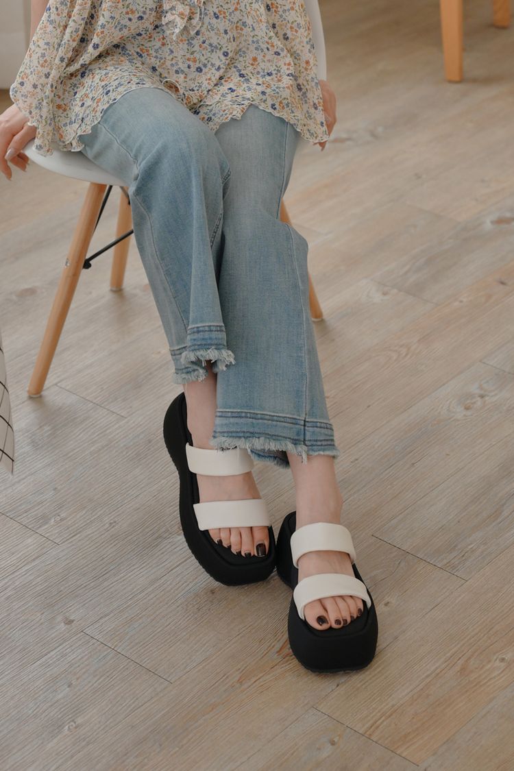 簡約寬帶厚底拖鞋*2色(有40碼)