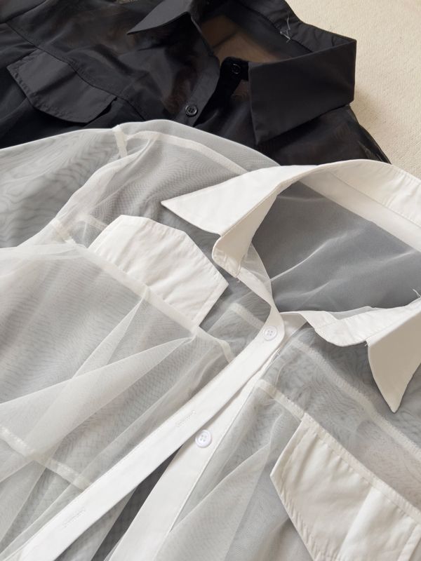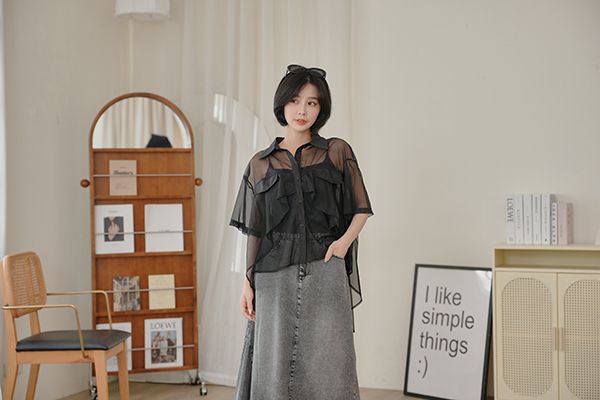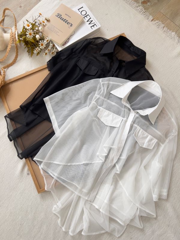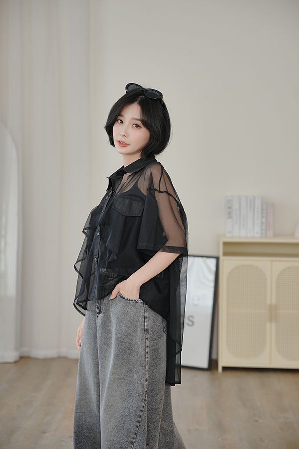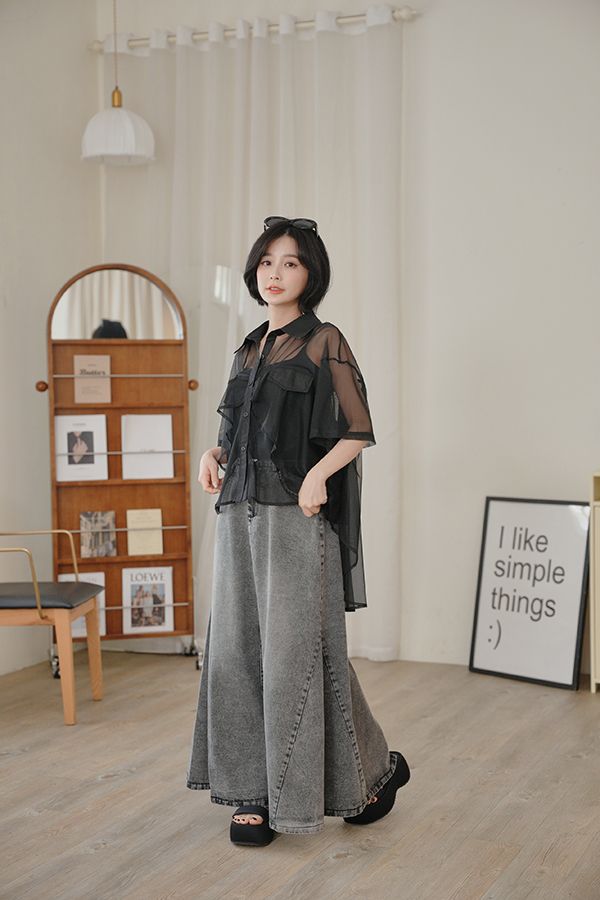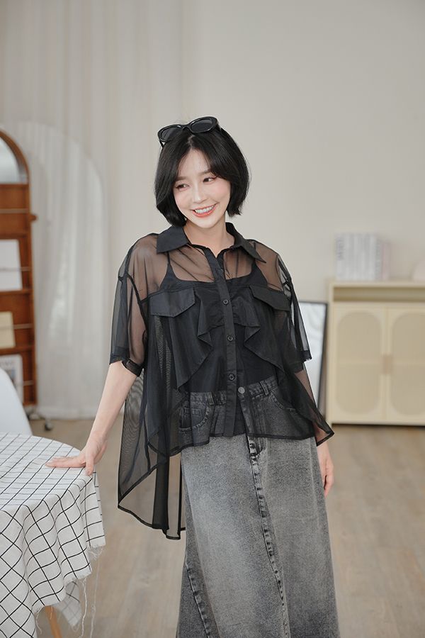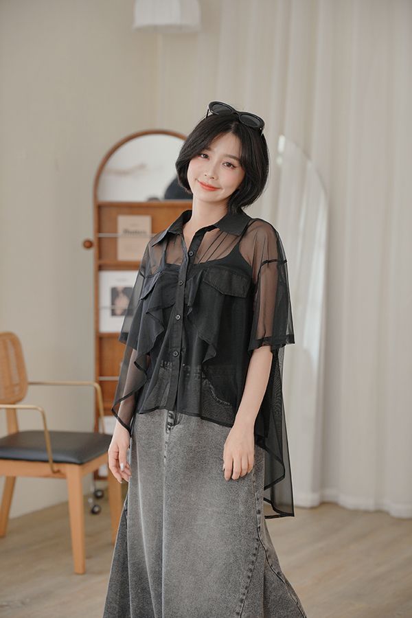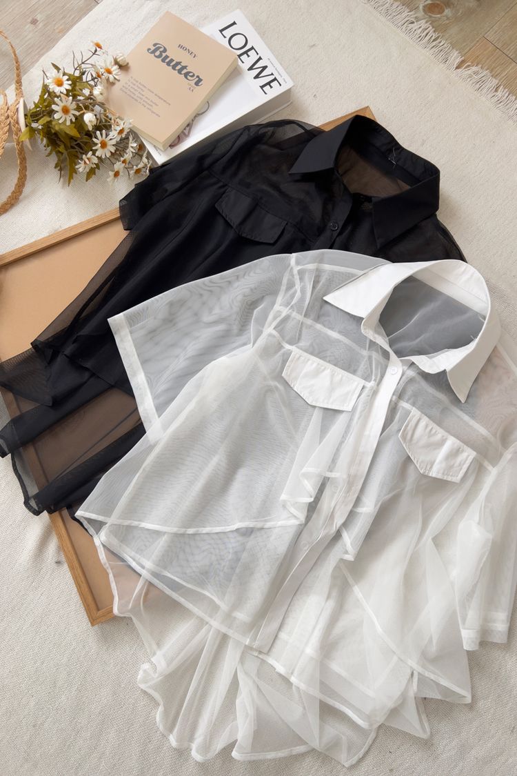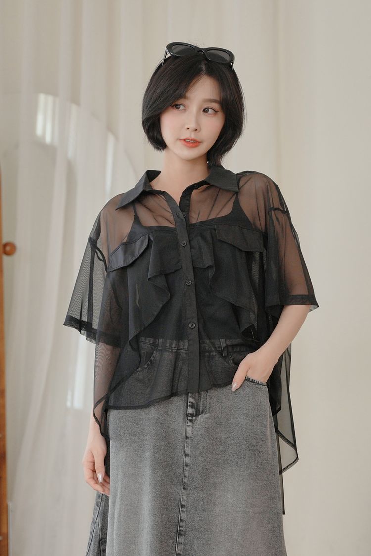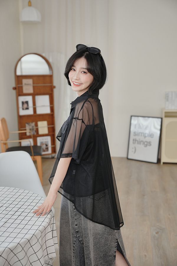 前短後長透膚短袖襯衫*2色