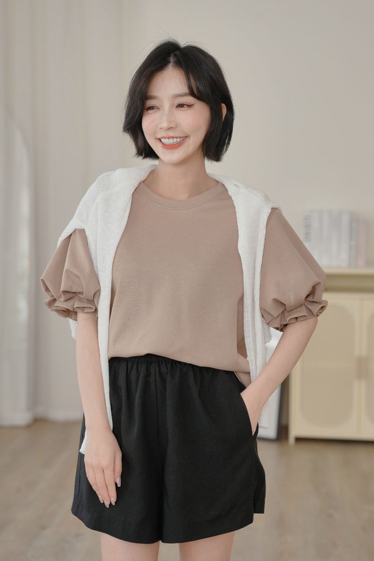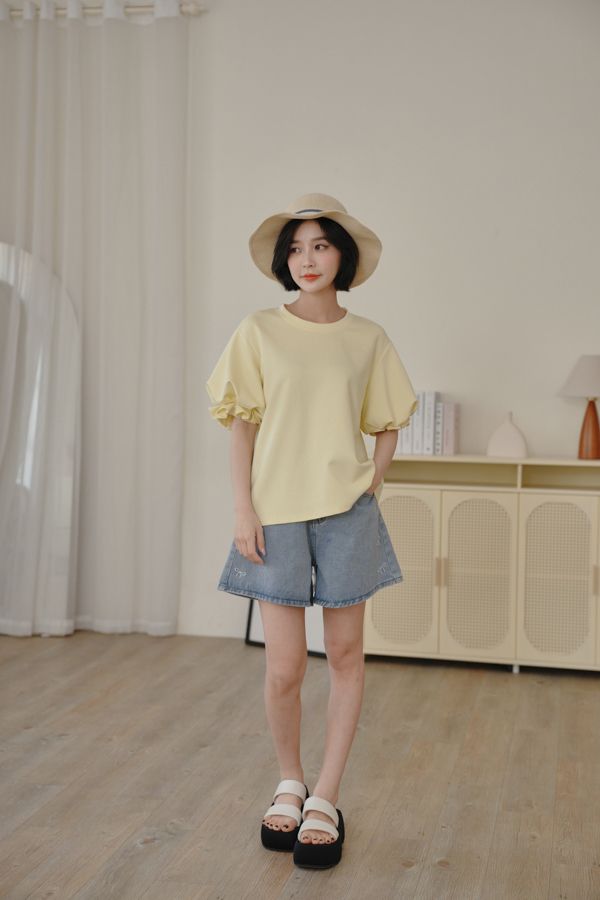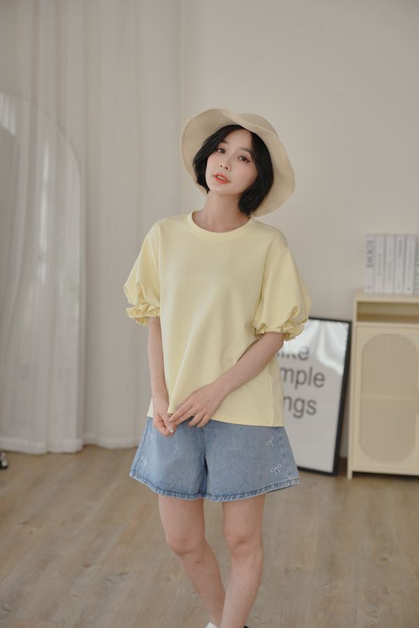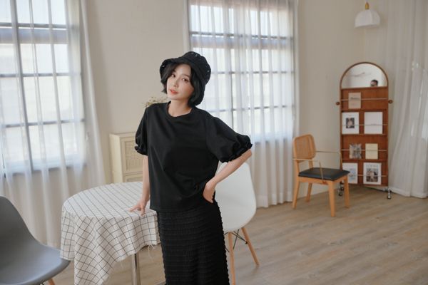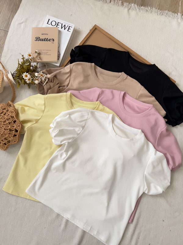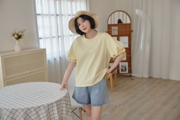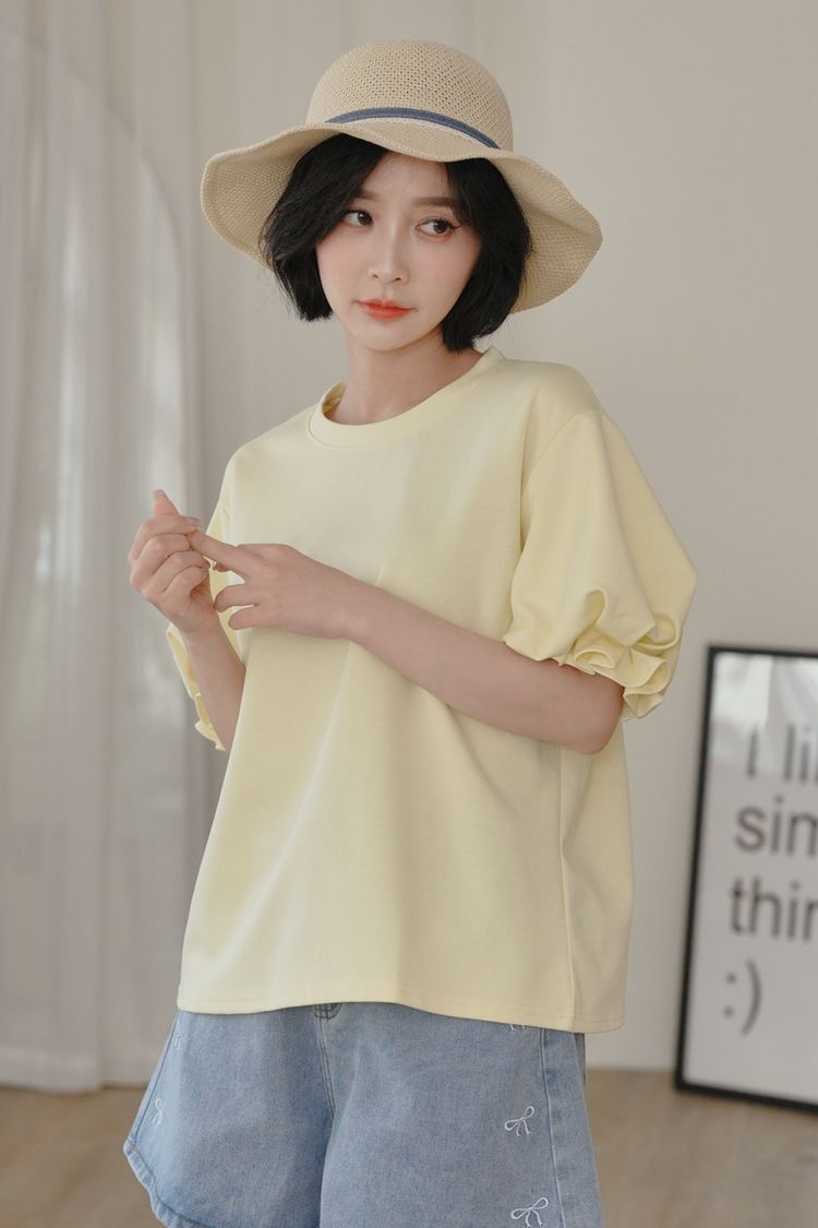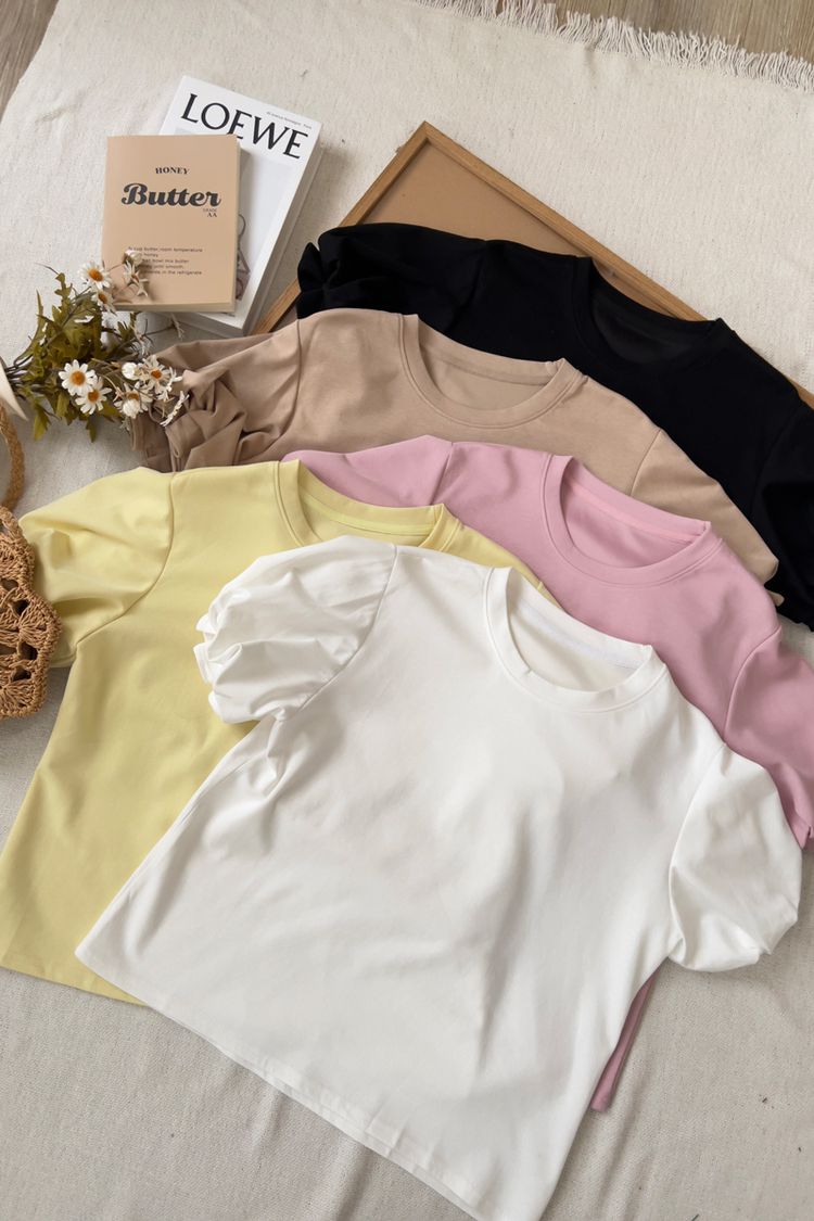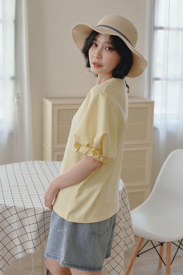 設計感花苞袖拼接上衣*5色