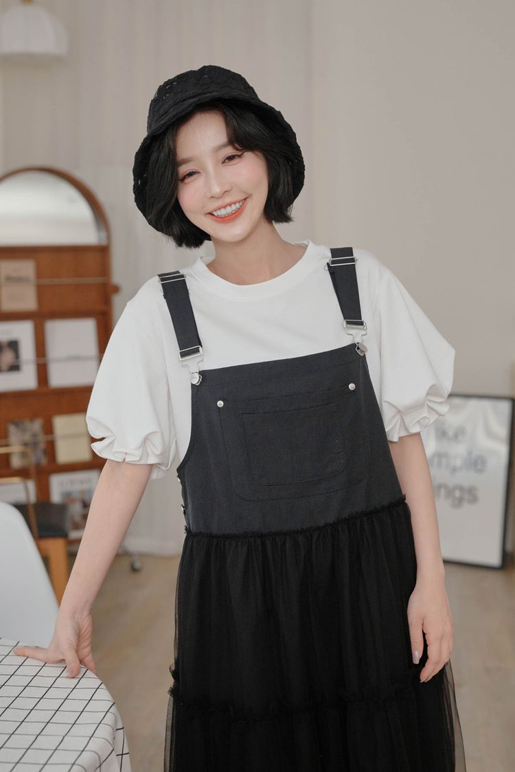自然澎袖+拼接層次,穿起來很有設計感❣️