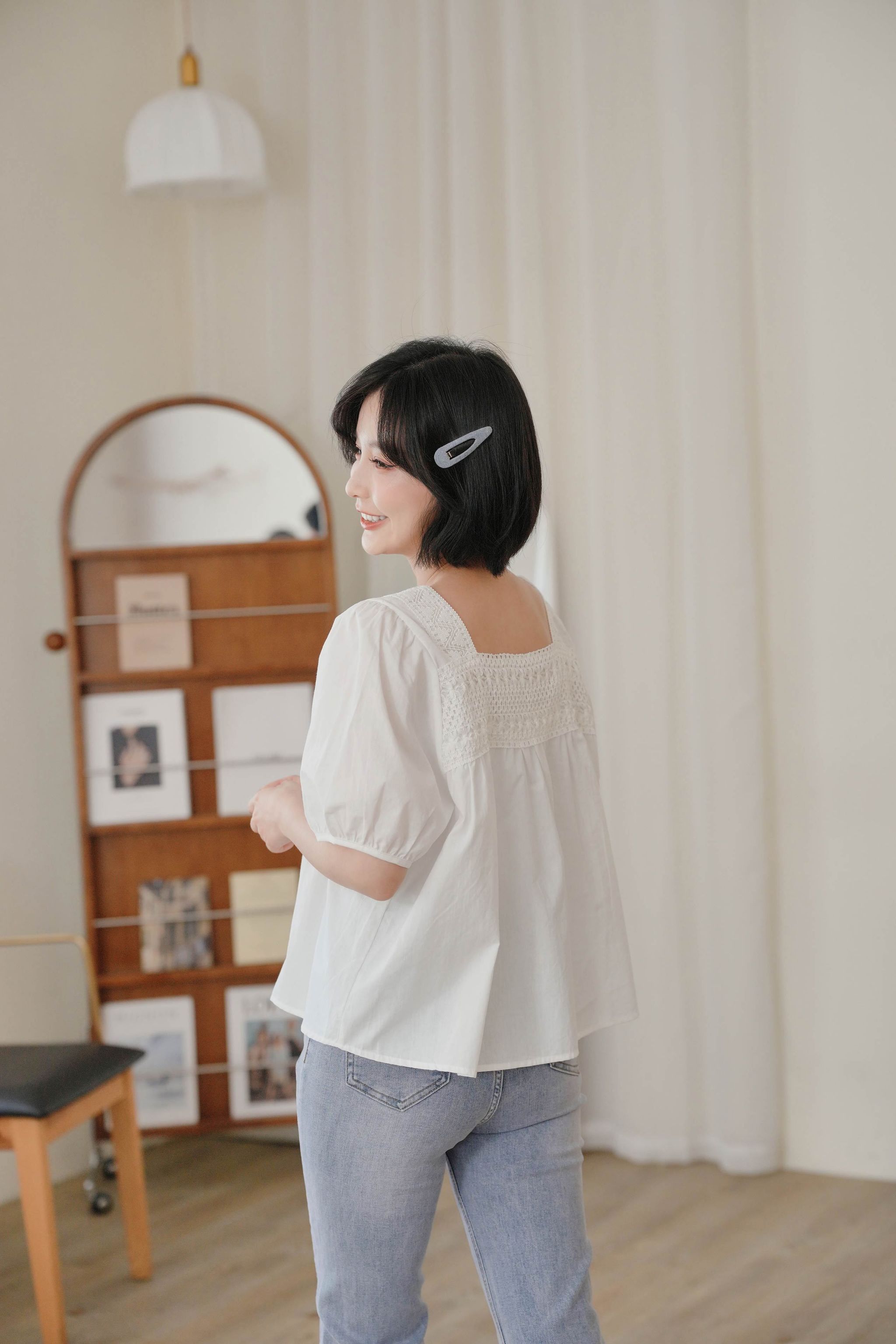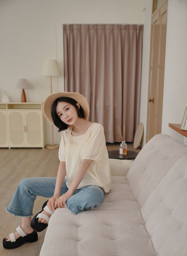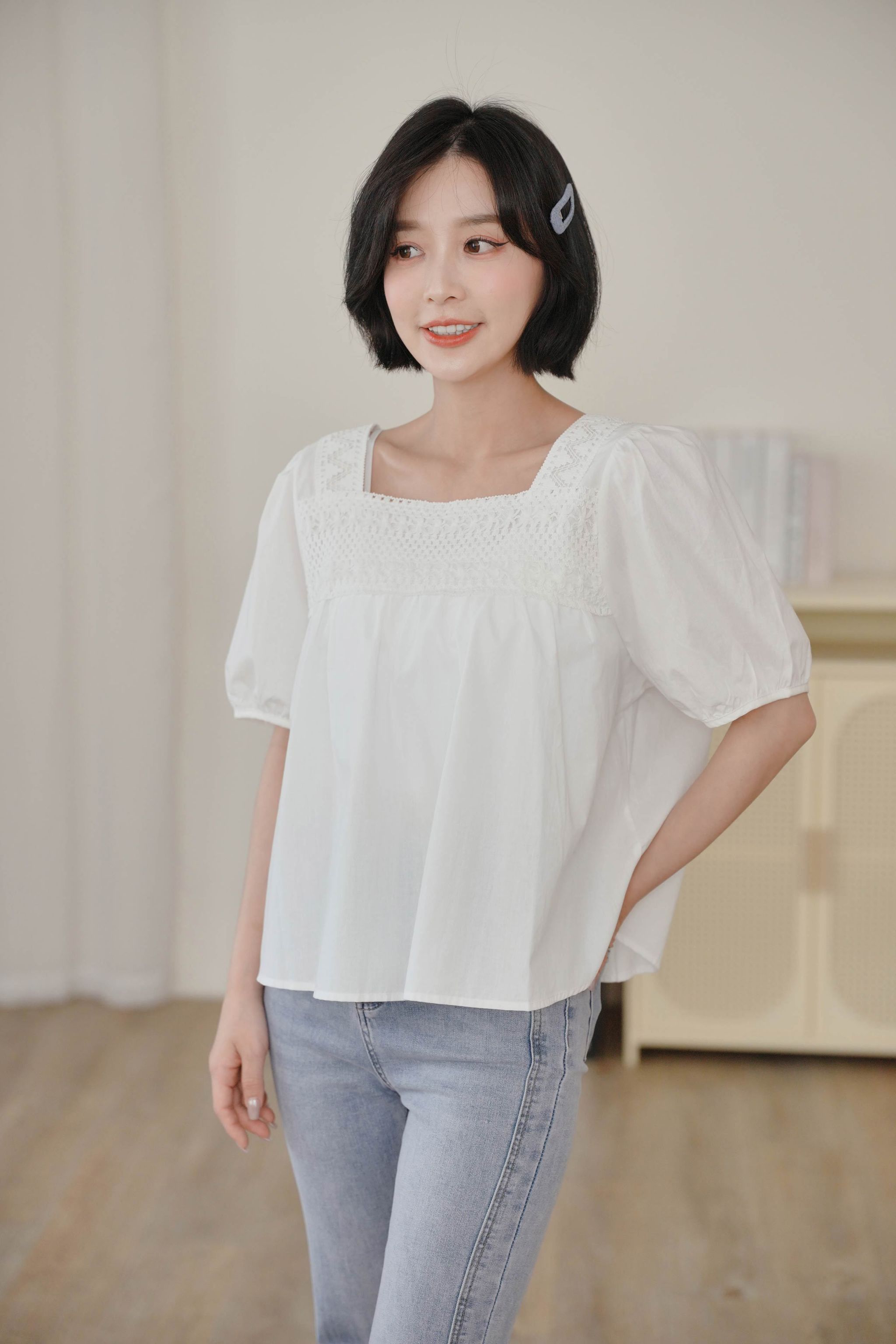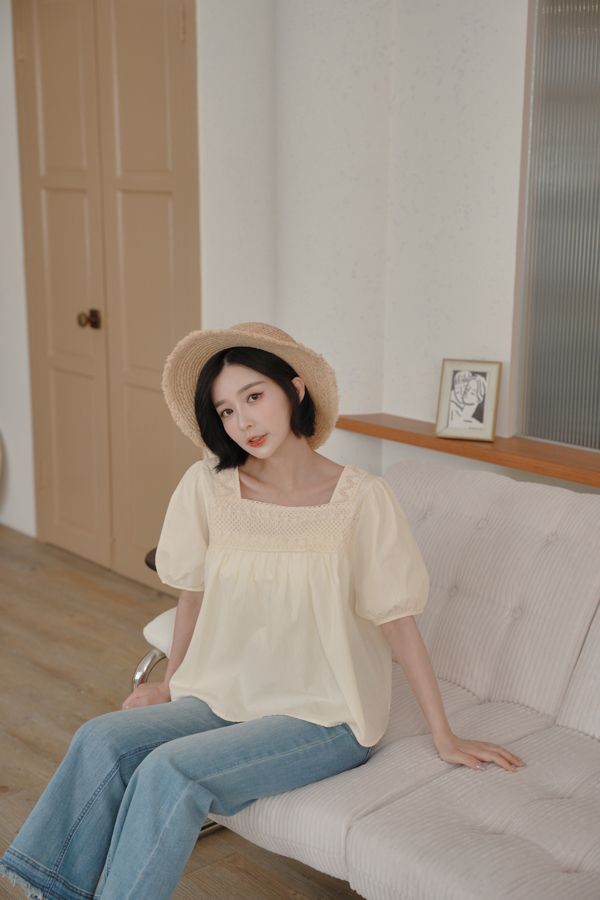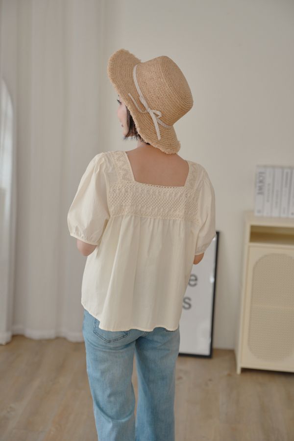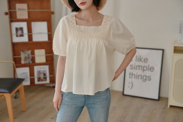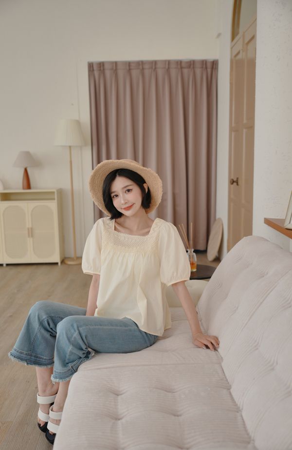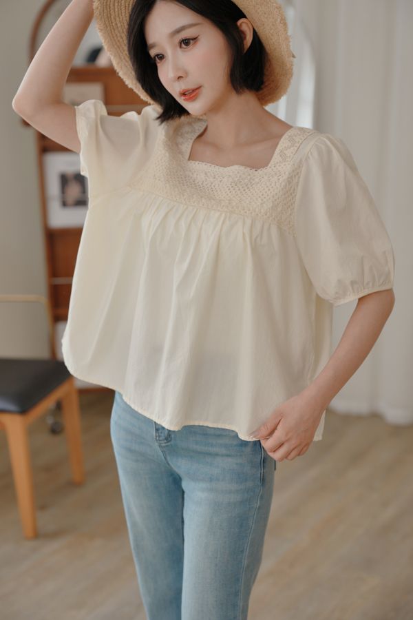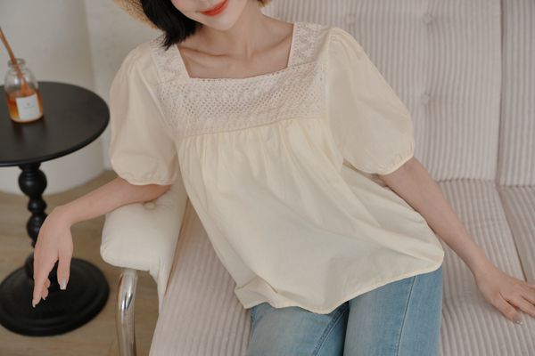 蕾絲方領短袖上衣*2色