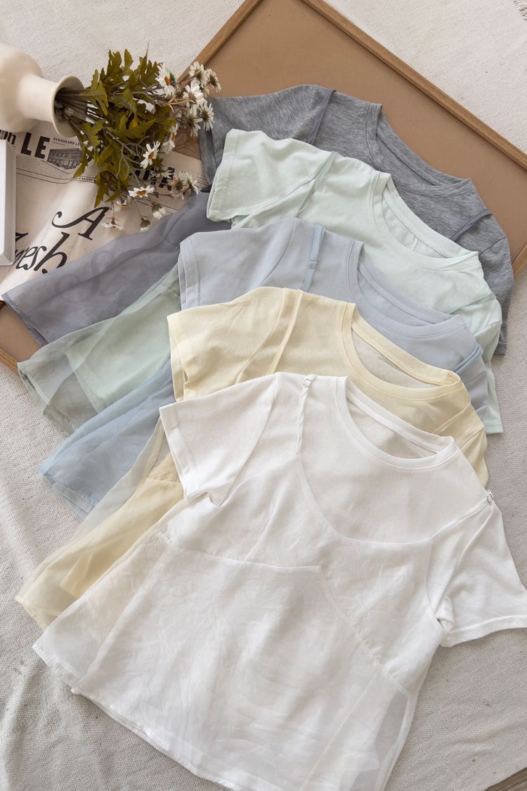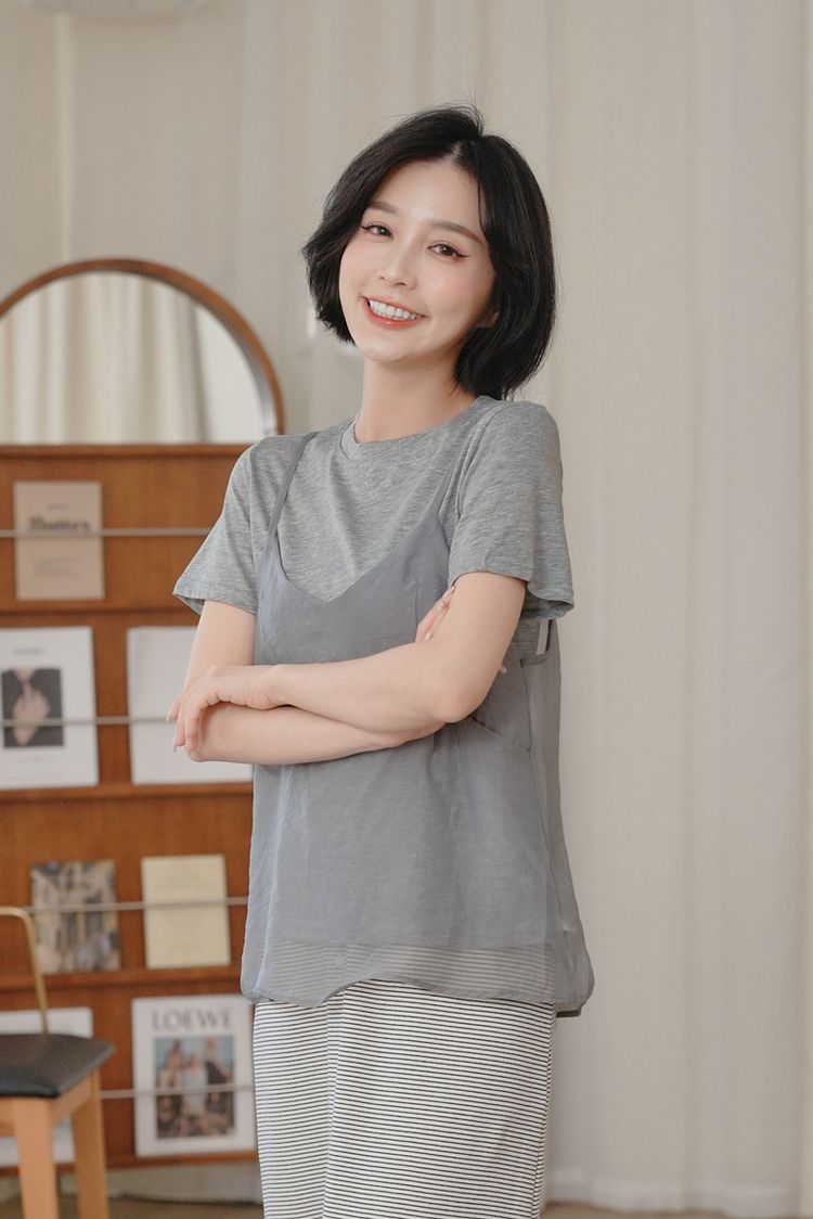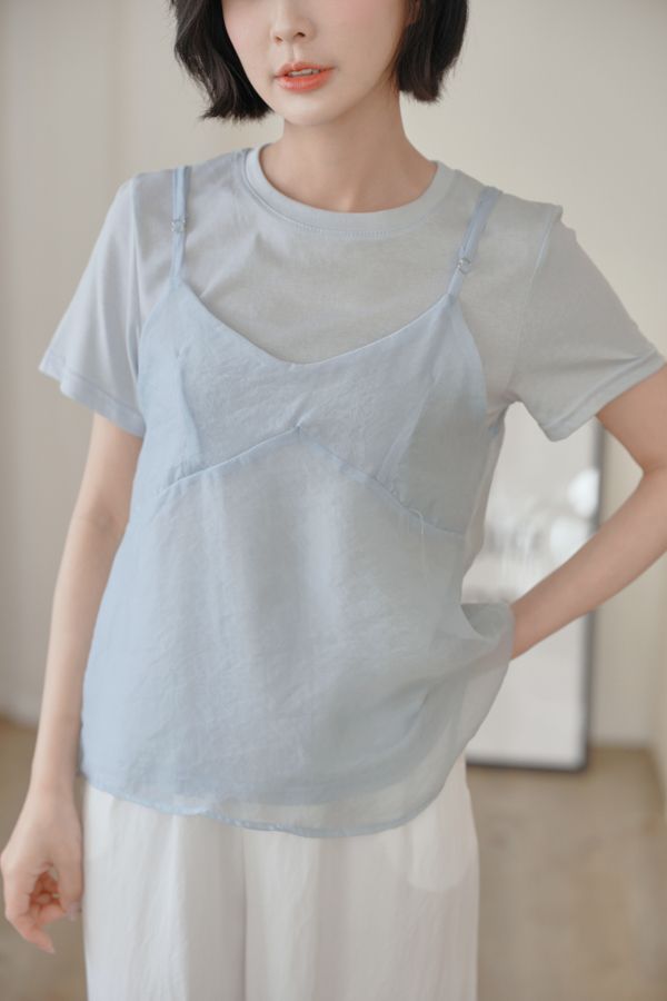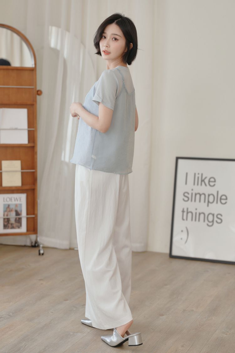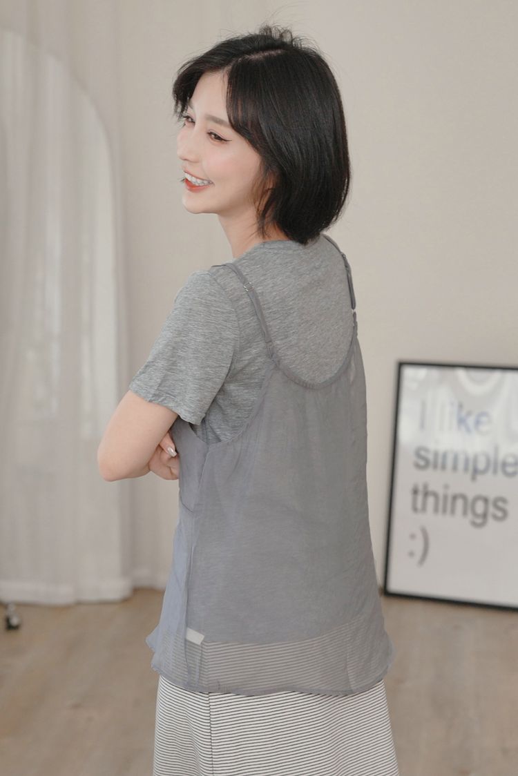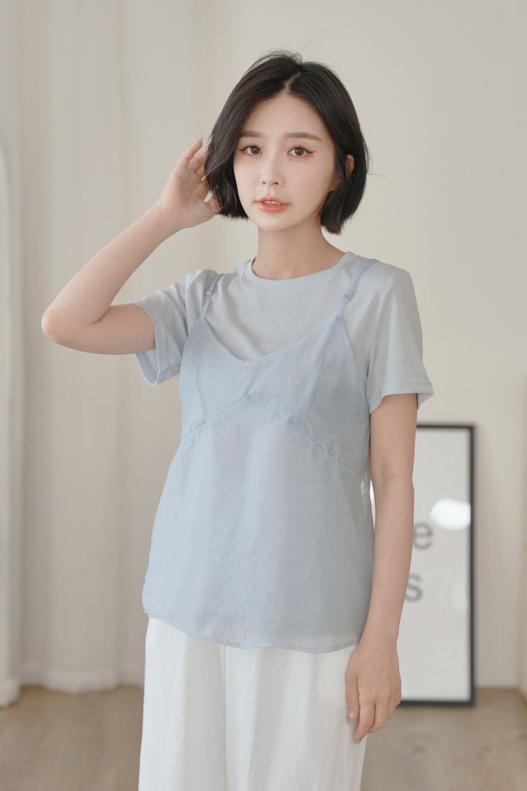 雲紗層次短袖套組(上衣+細肩背心)*5色