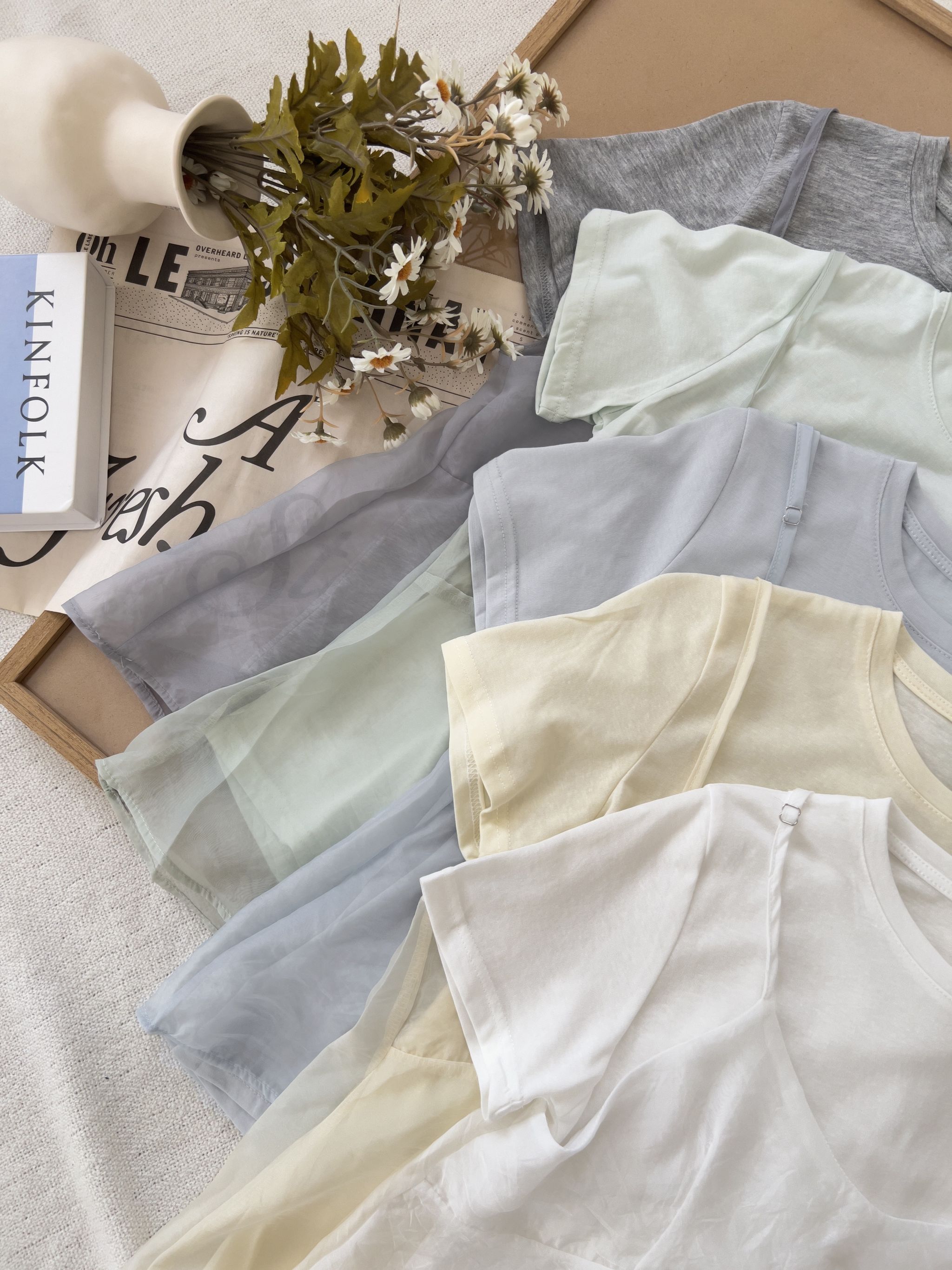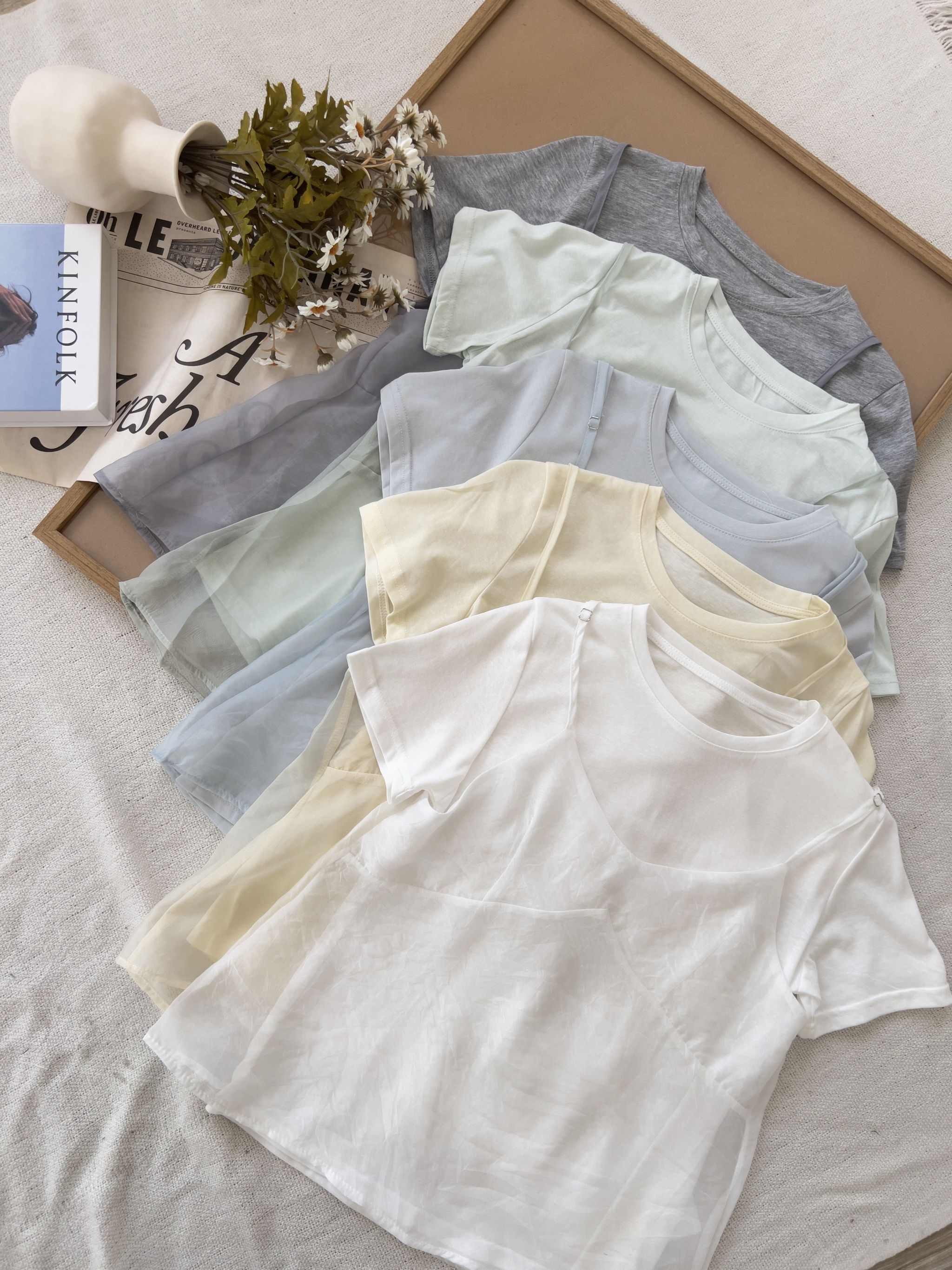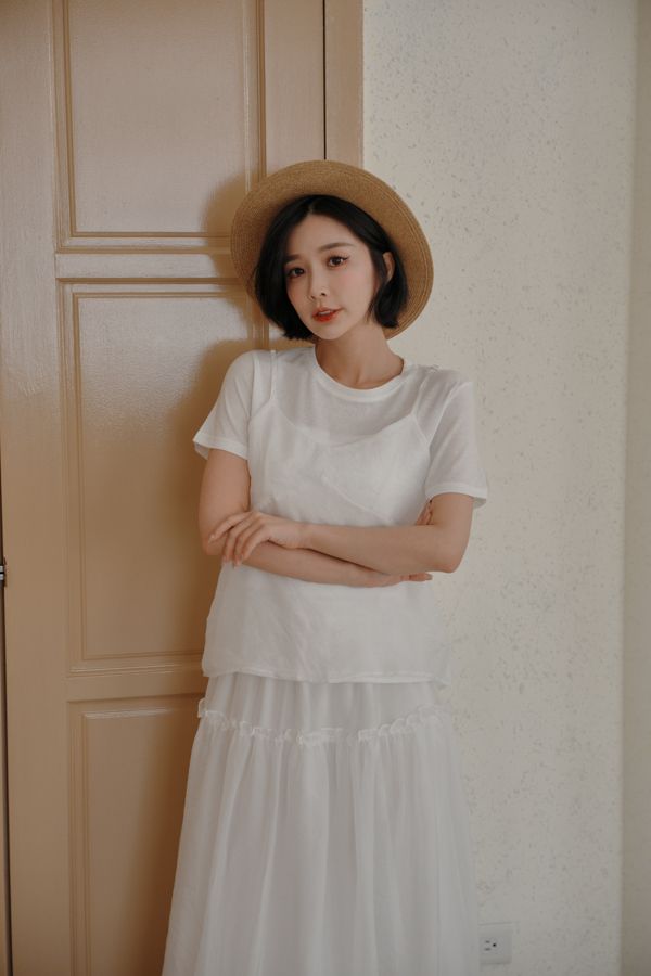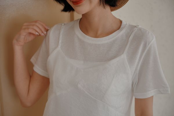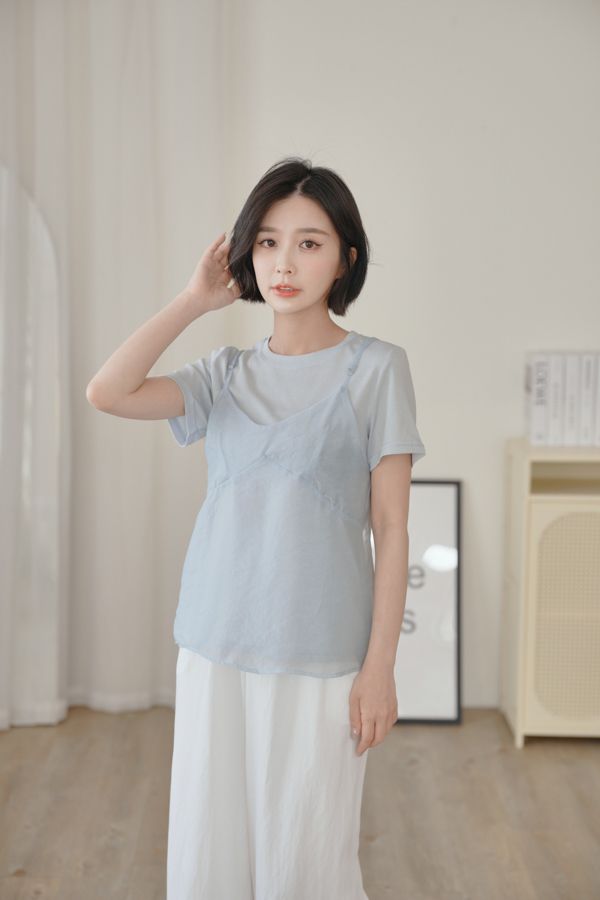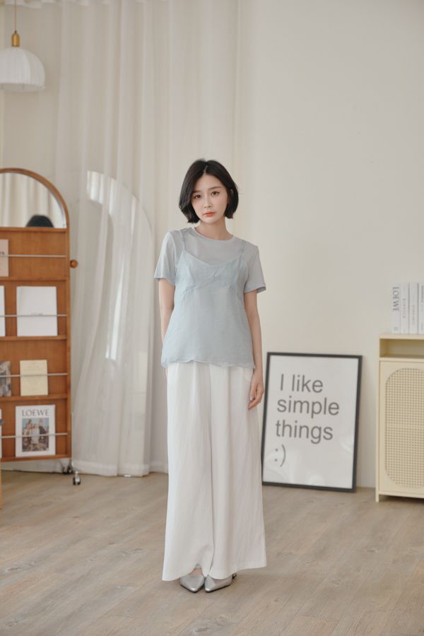 雲紗層次短袖套組(上衣+細肩背心)*5色