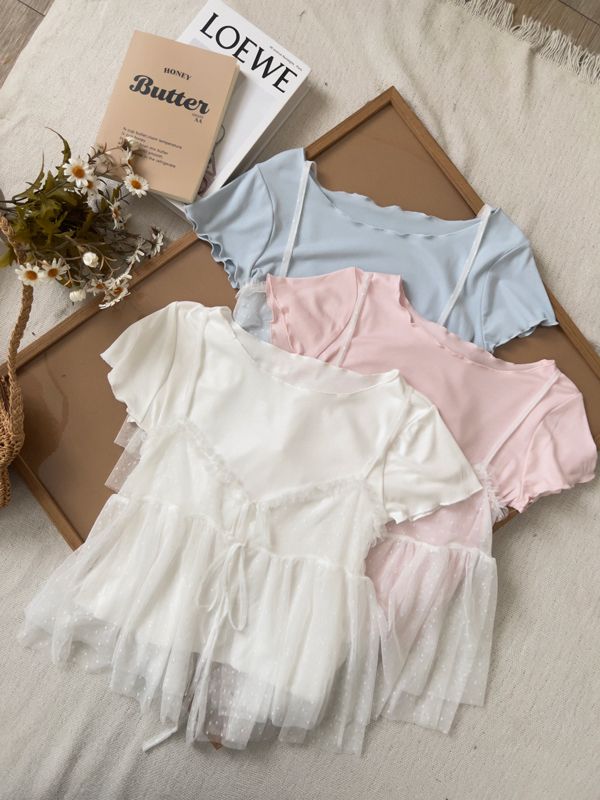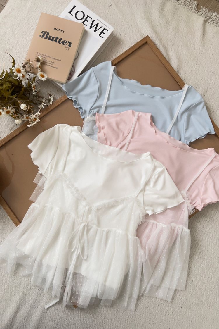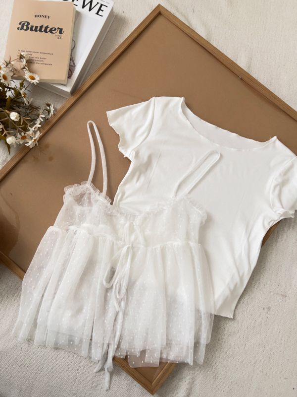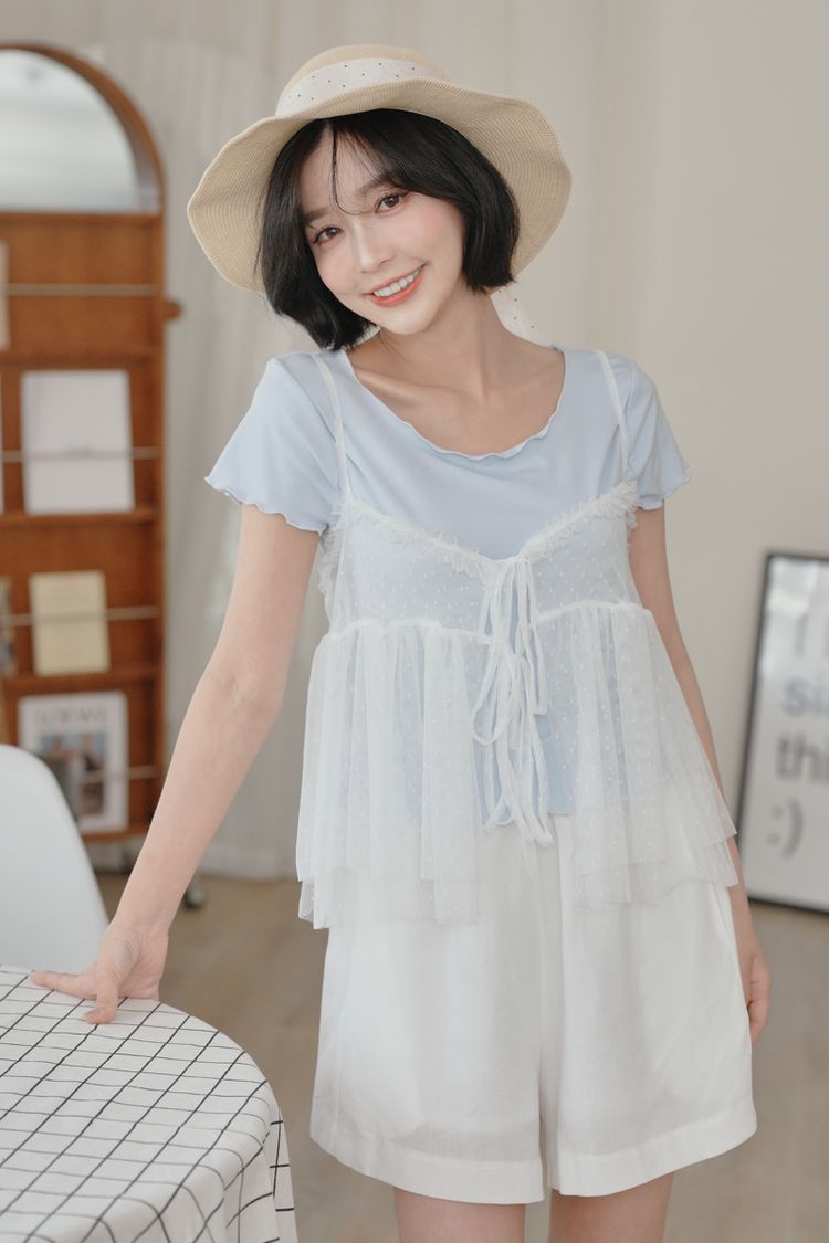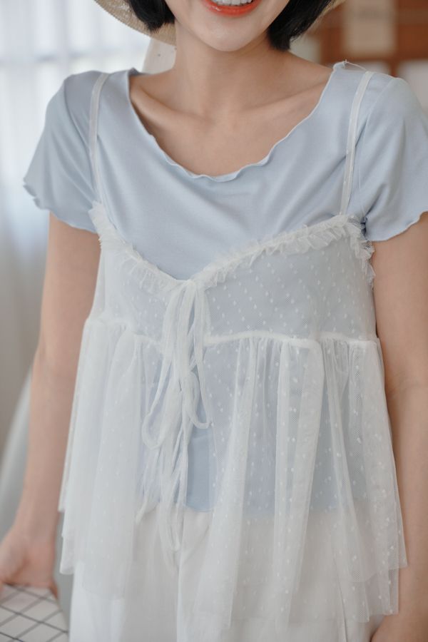 日系女孩的點點上衣套組(上衣+細肩背心)*3色
