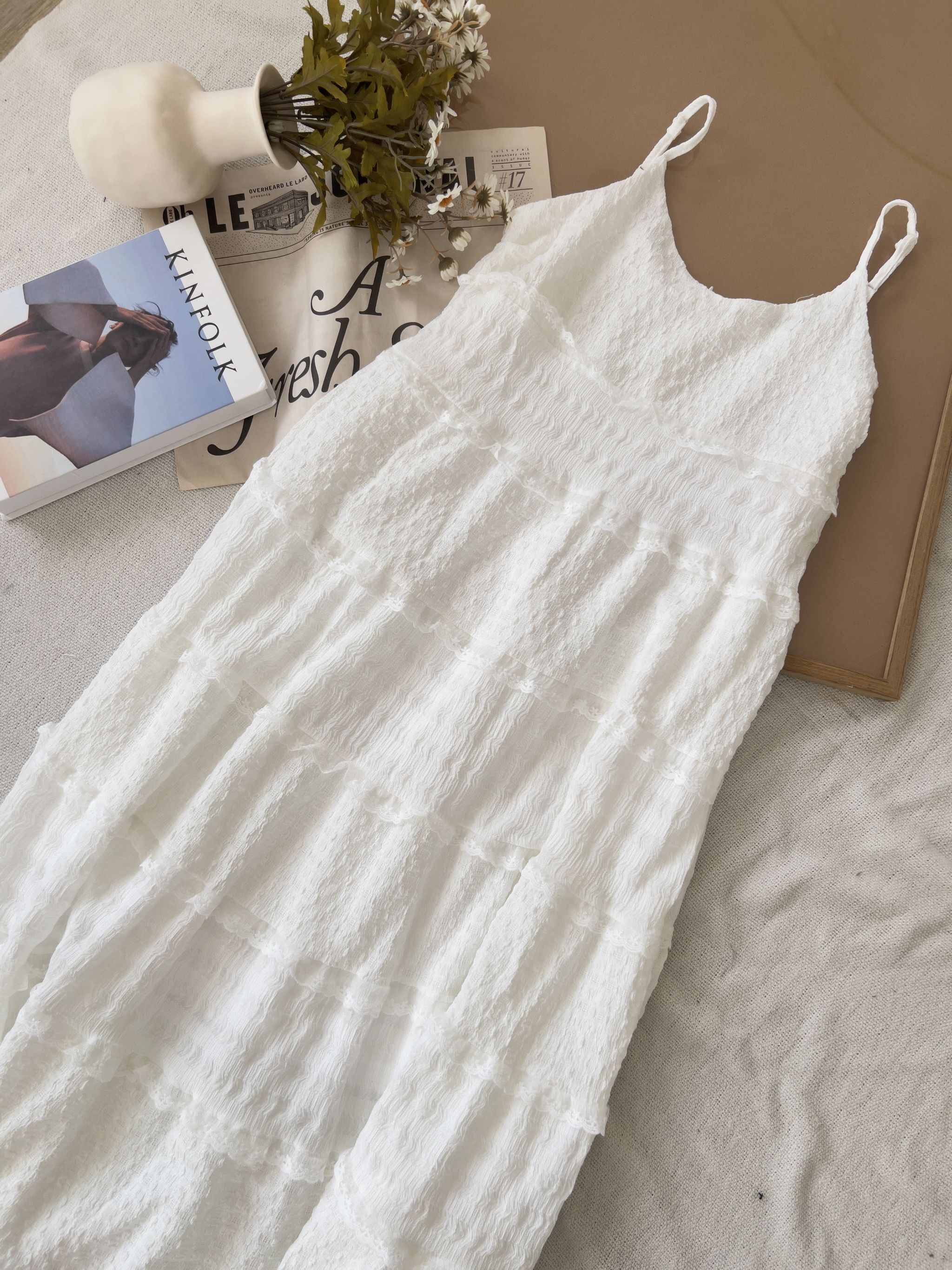 立體花邊蕾絲細肩長洋*1色
