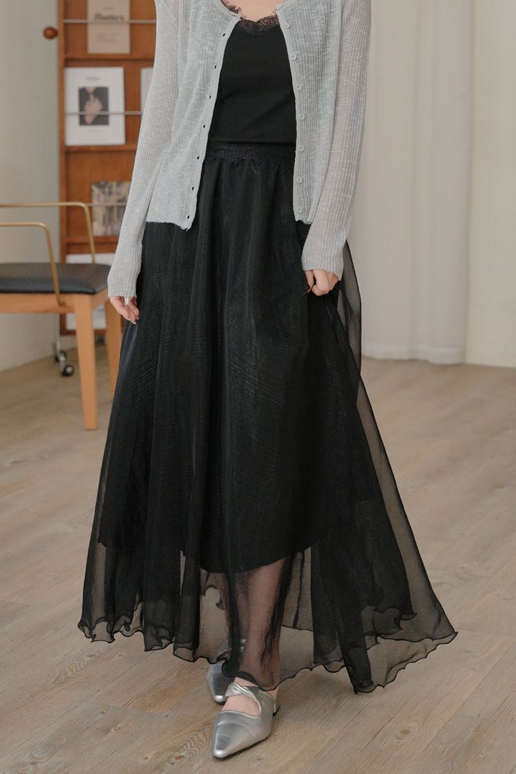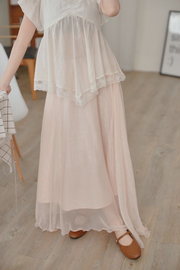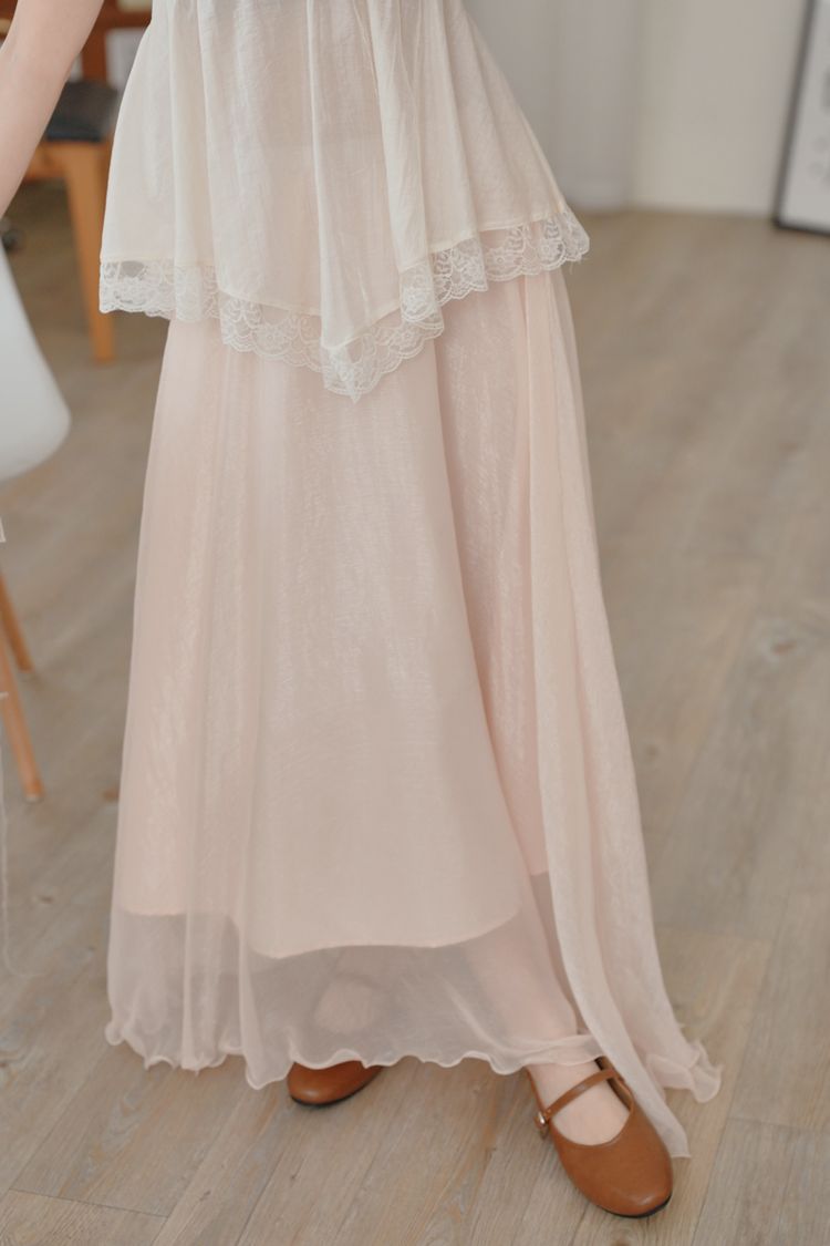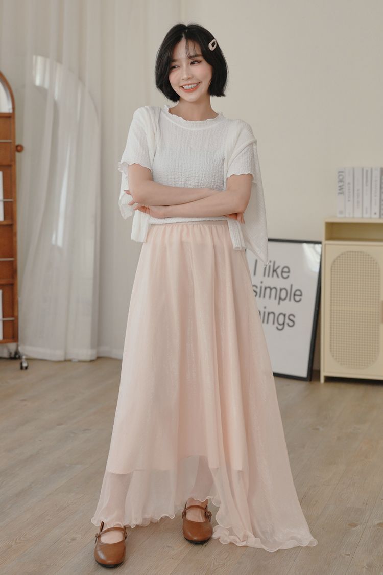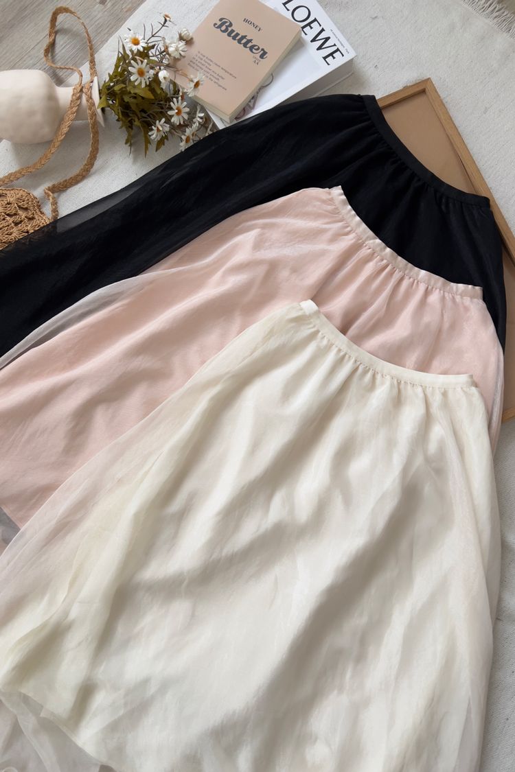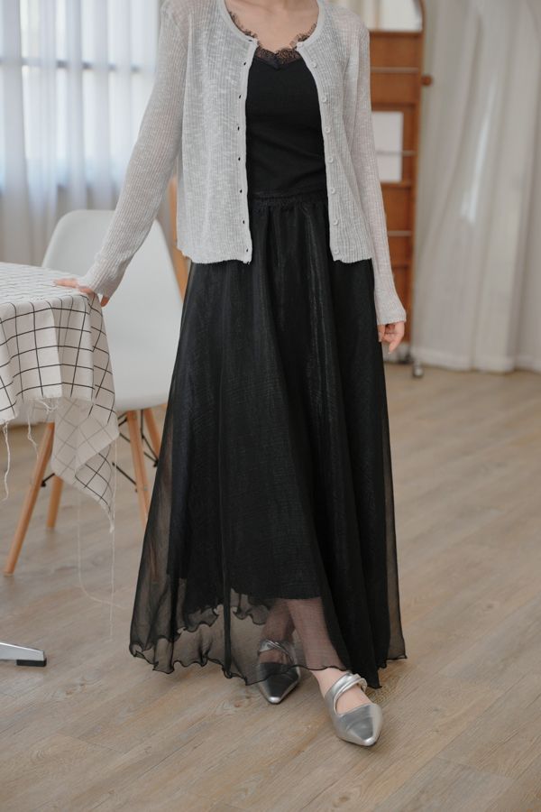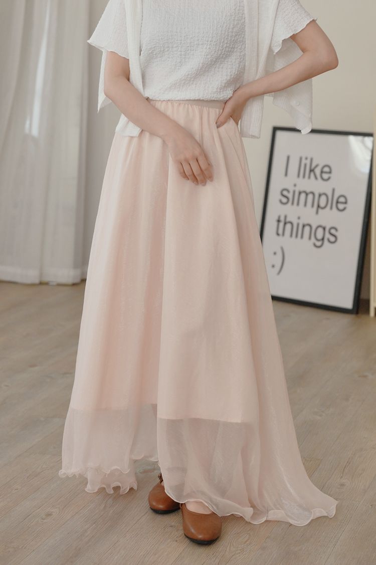 光澤紗感層次鬆緊長裙*3色