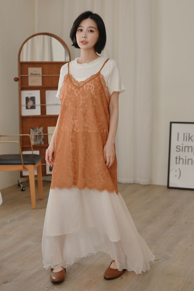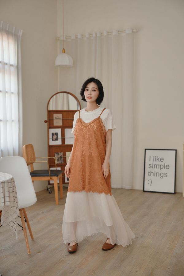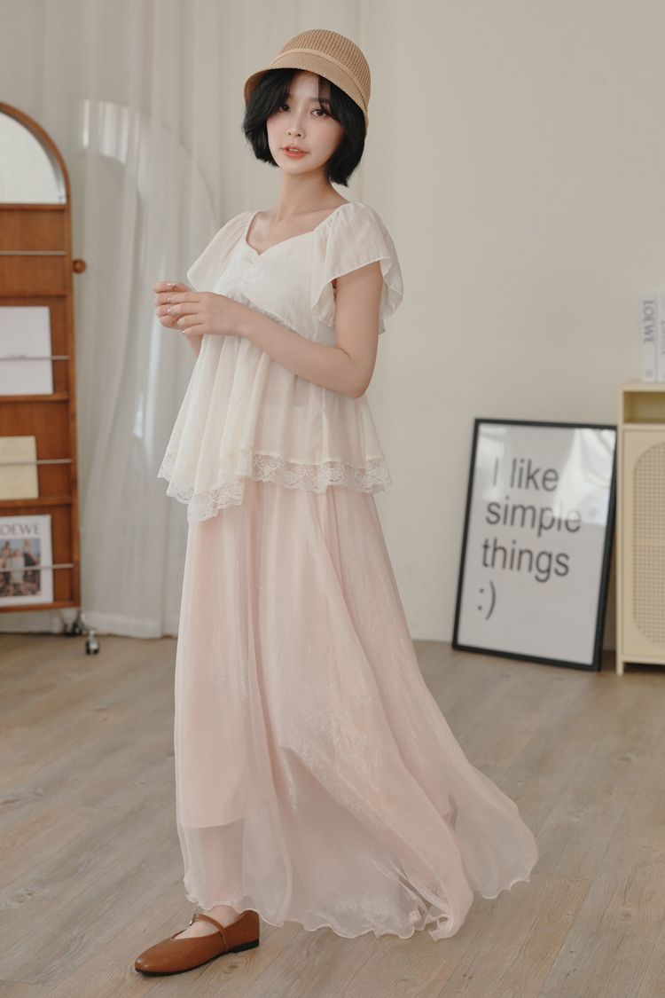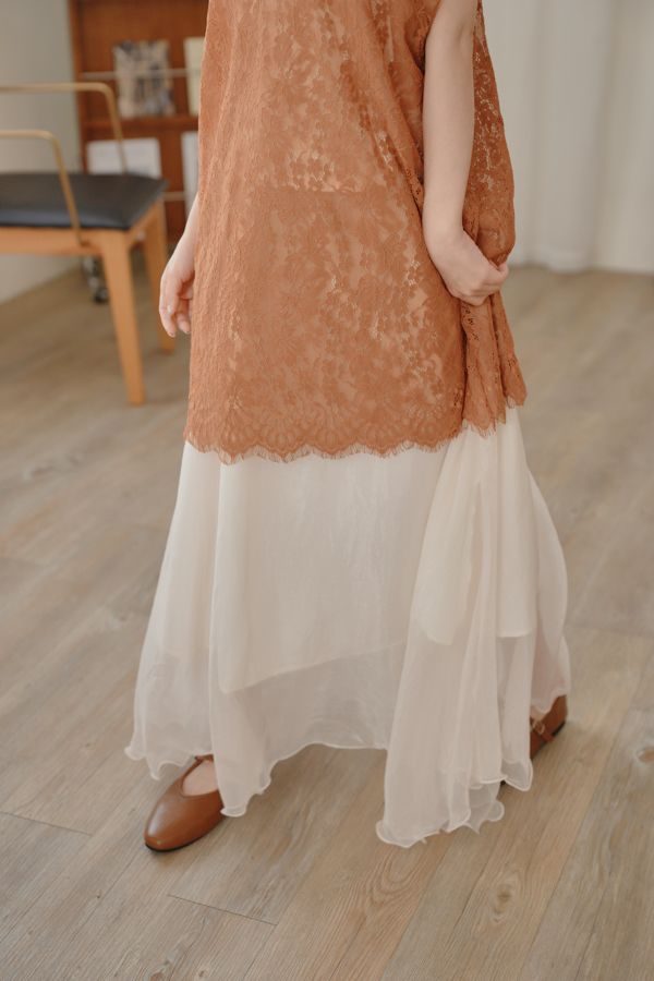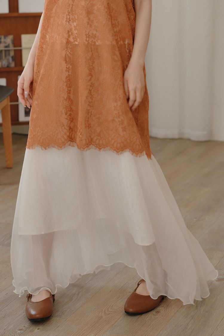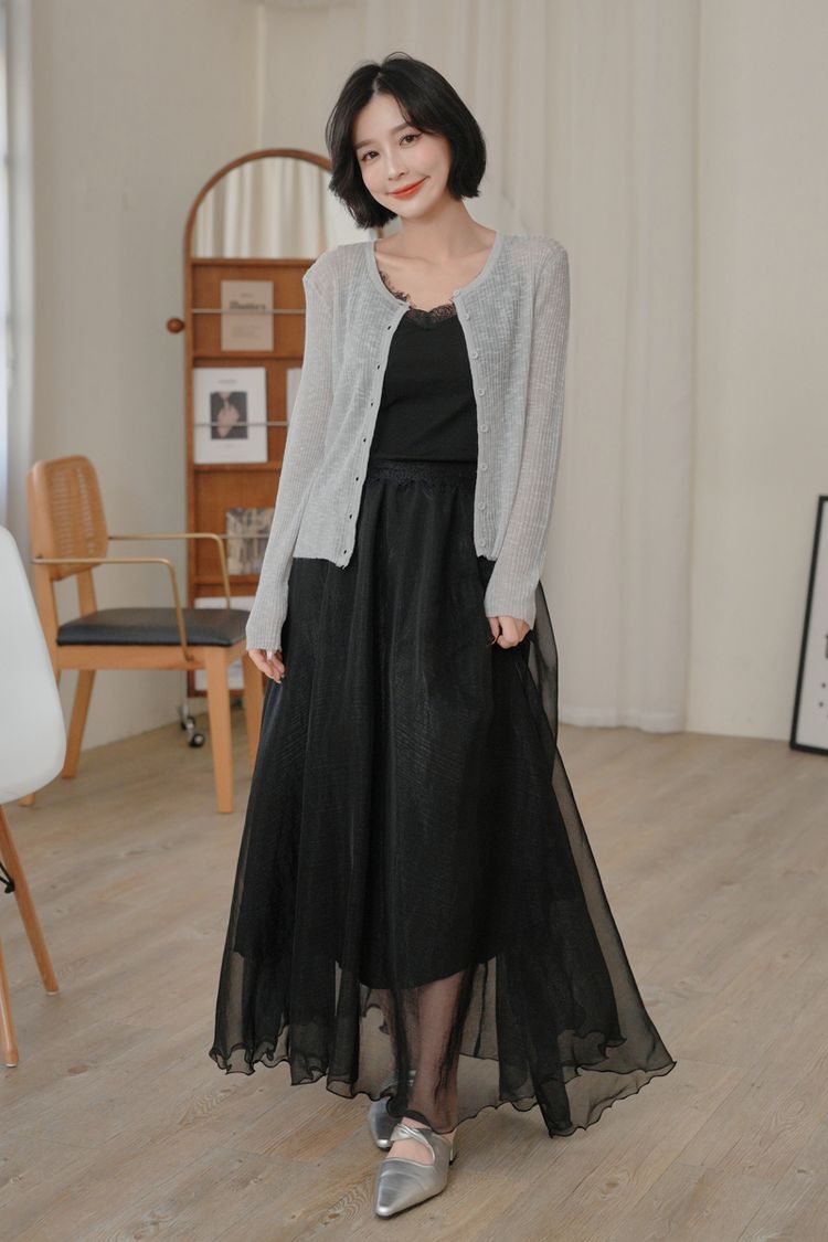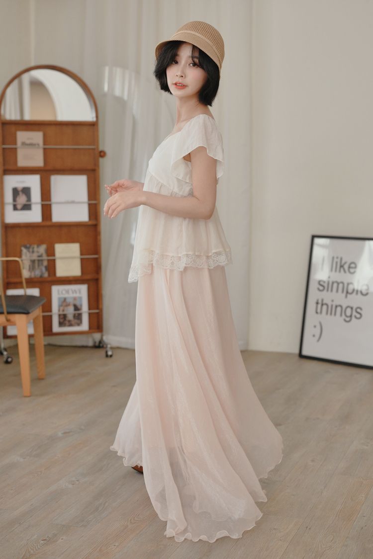 光澤紗感層次鬆緊長裙*3色