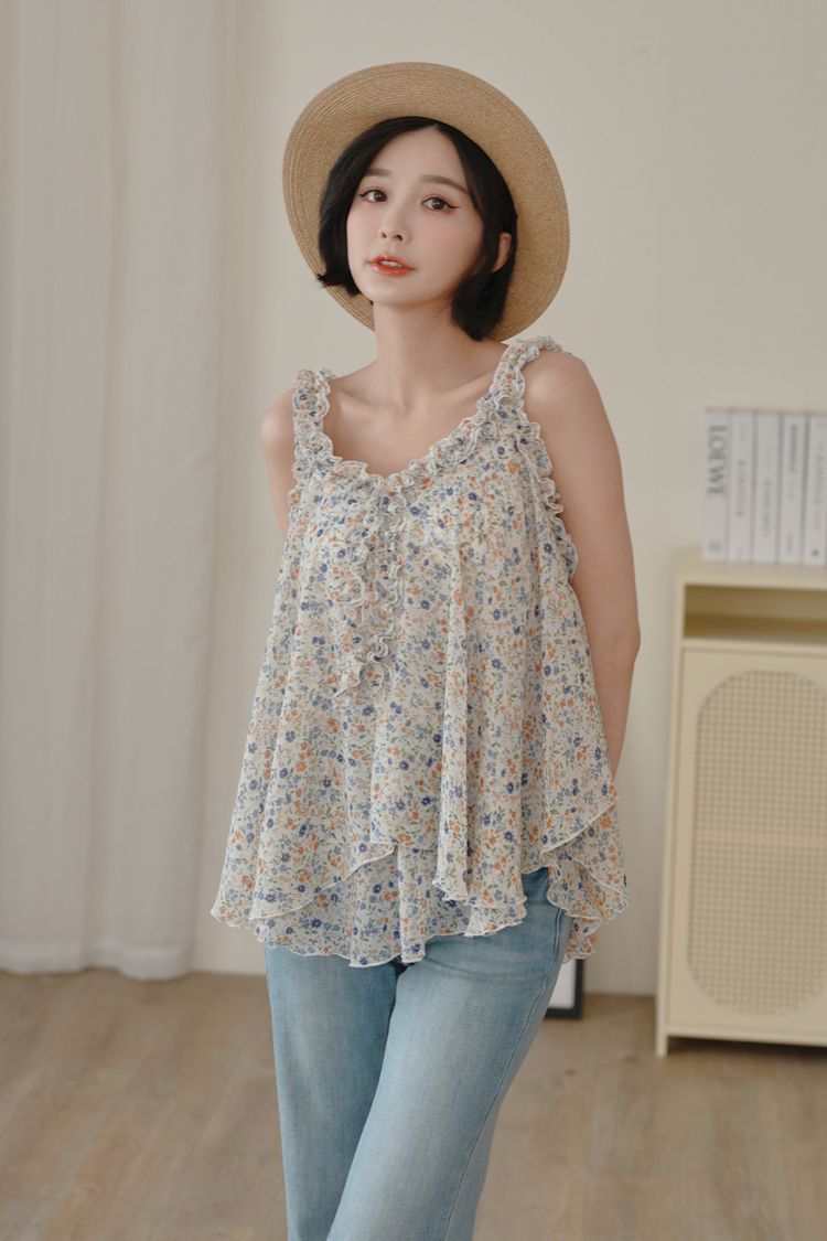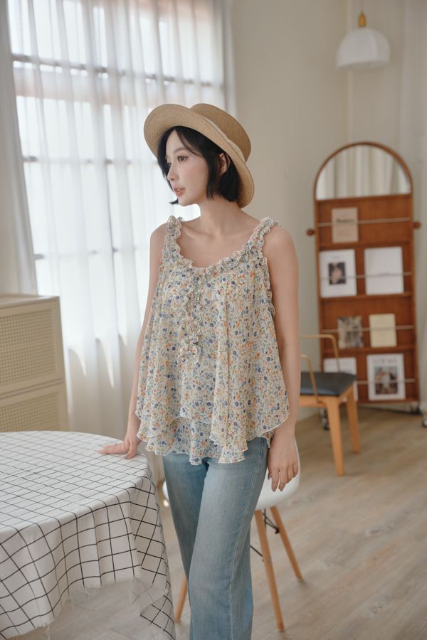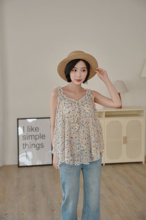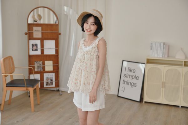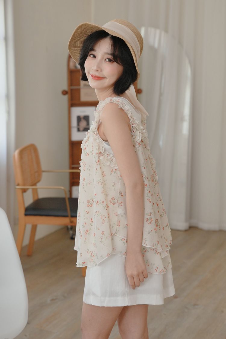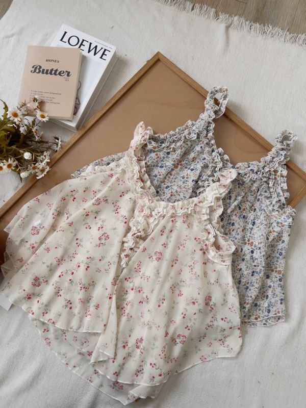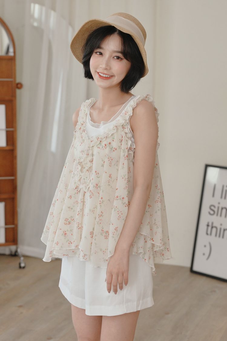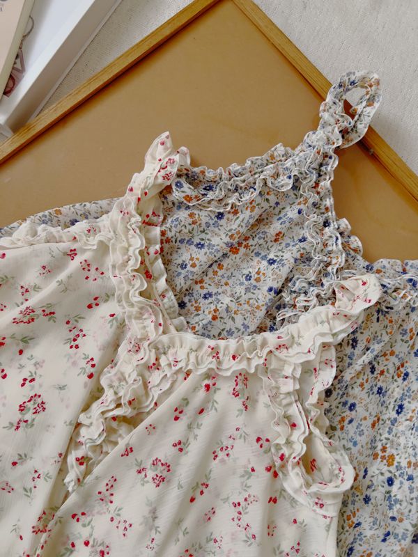 春感小碎花荷葉背心上衣*2色