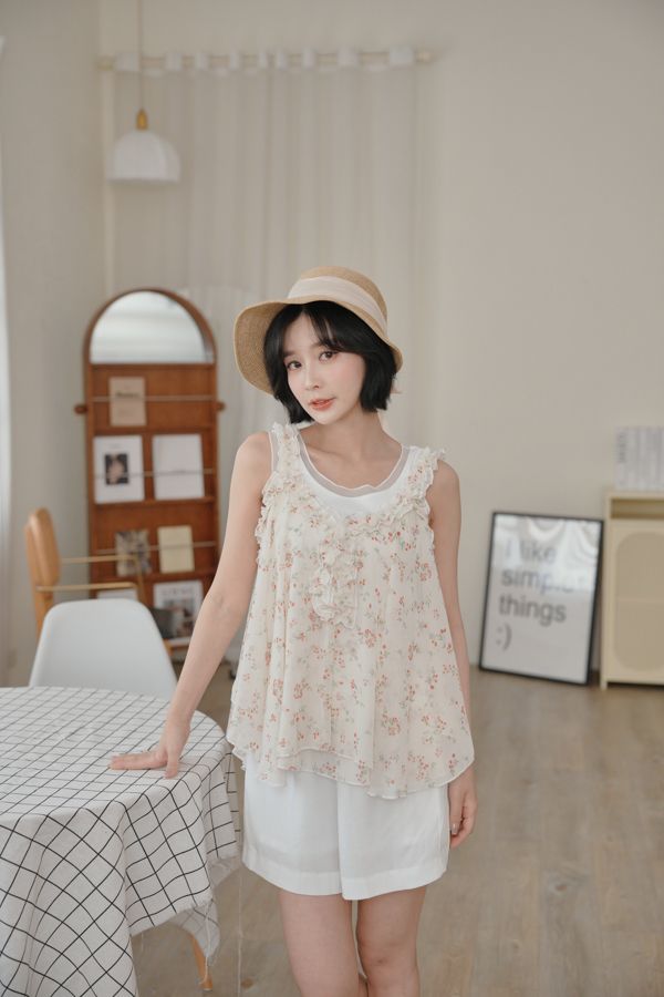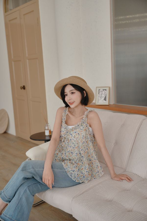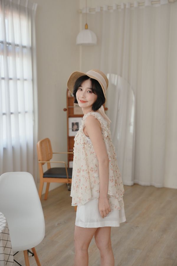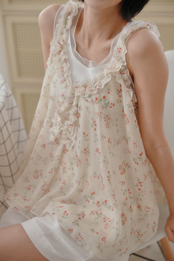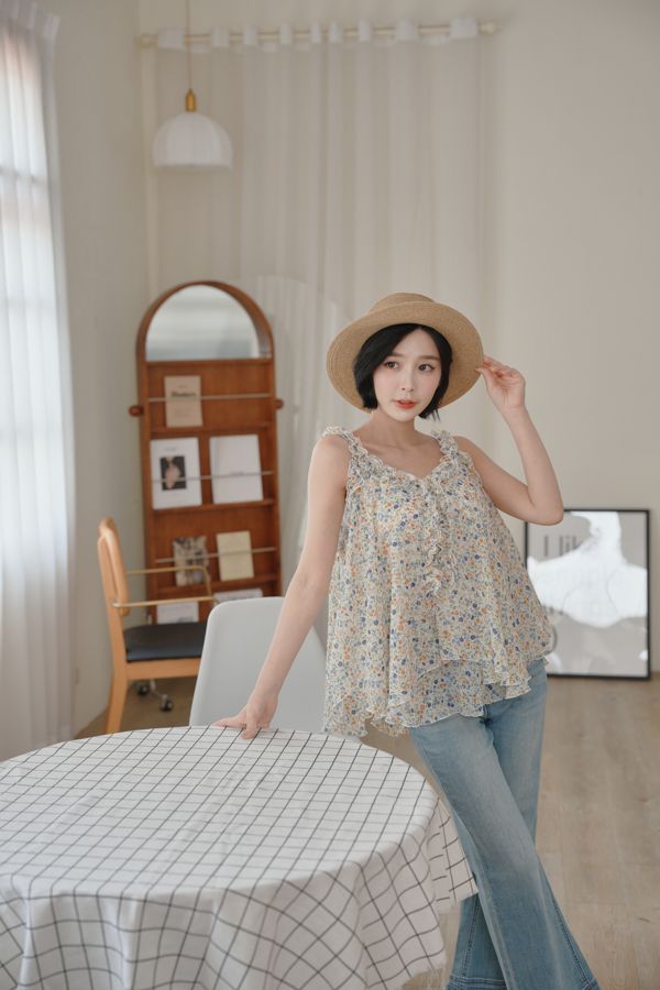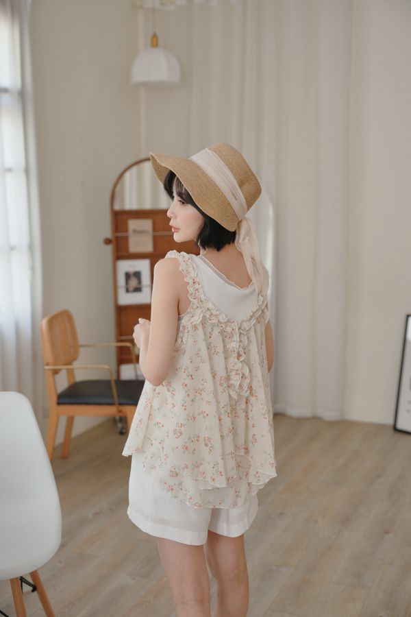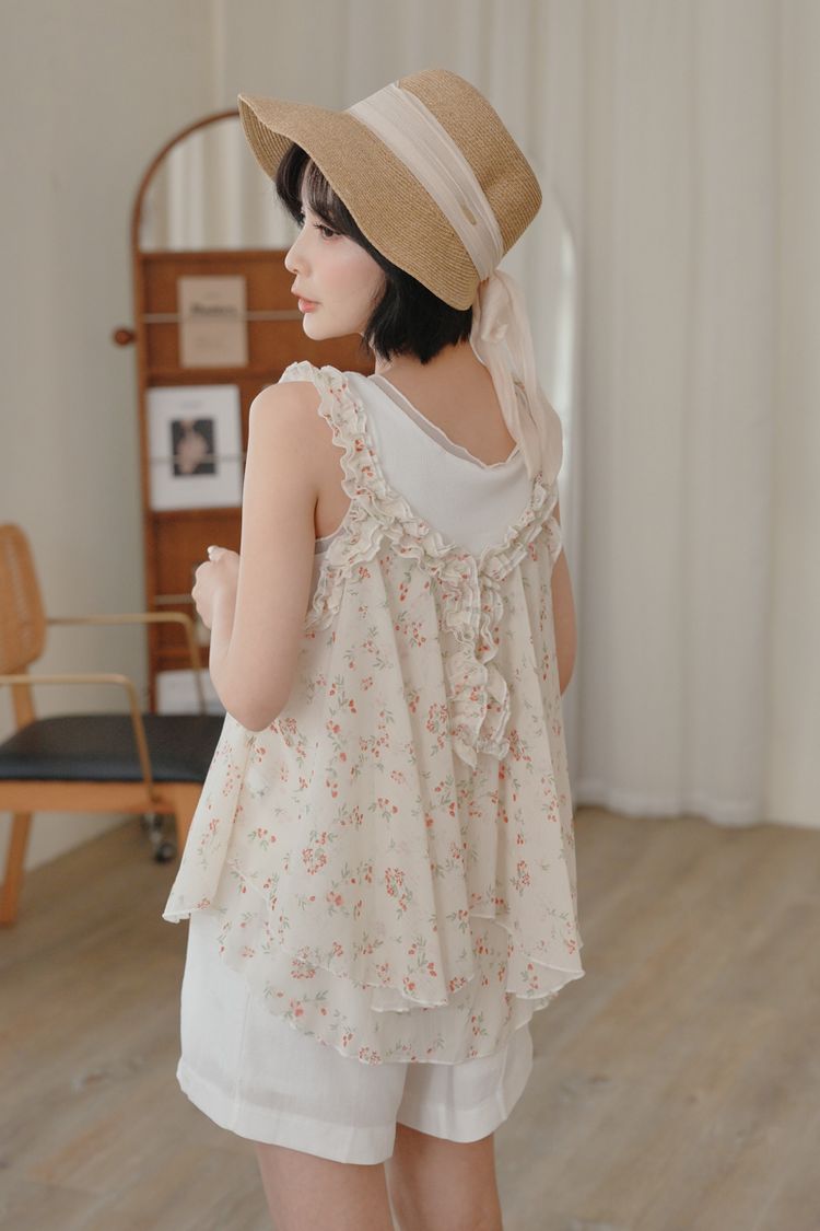 春感小碎花荷葉背心上衣*2色
