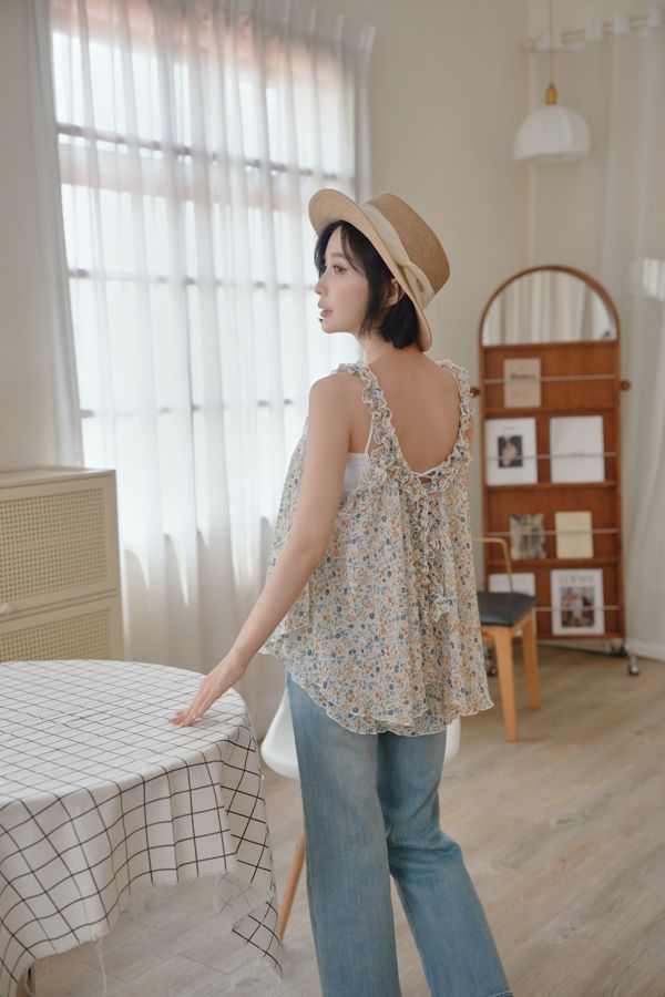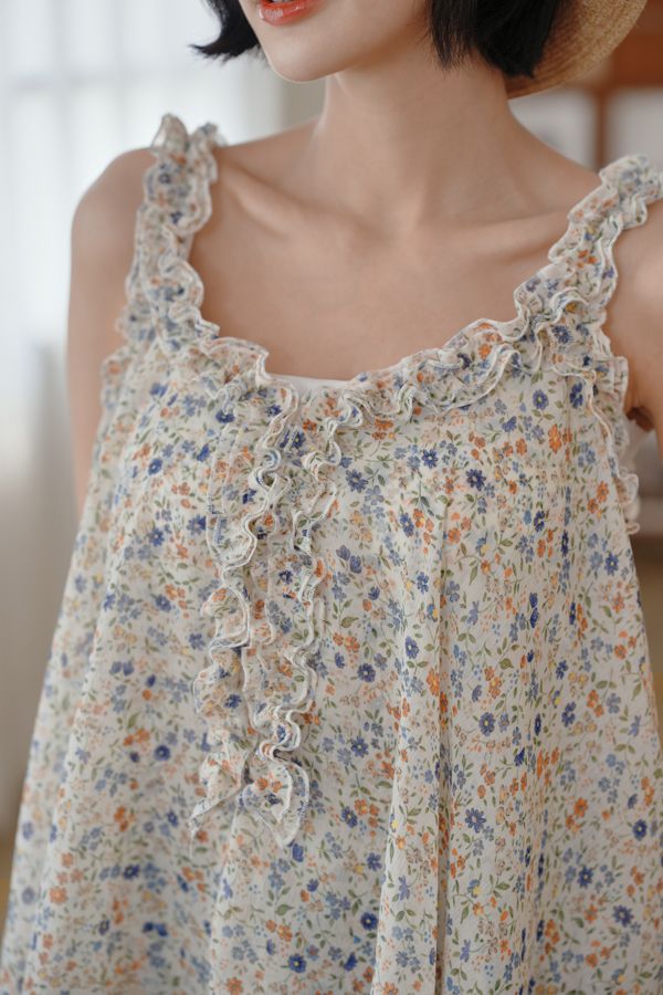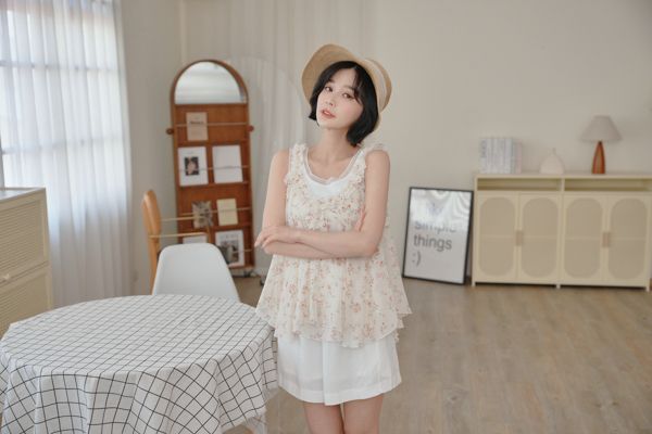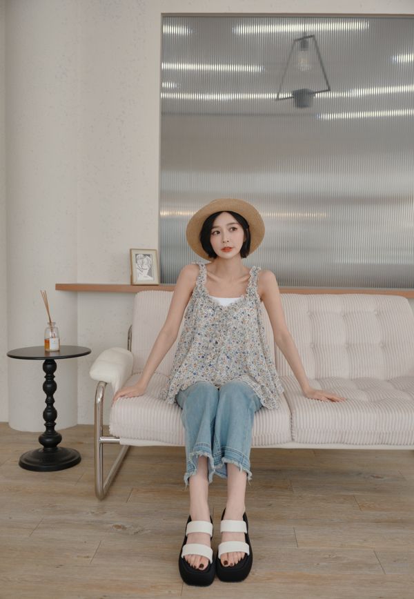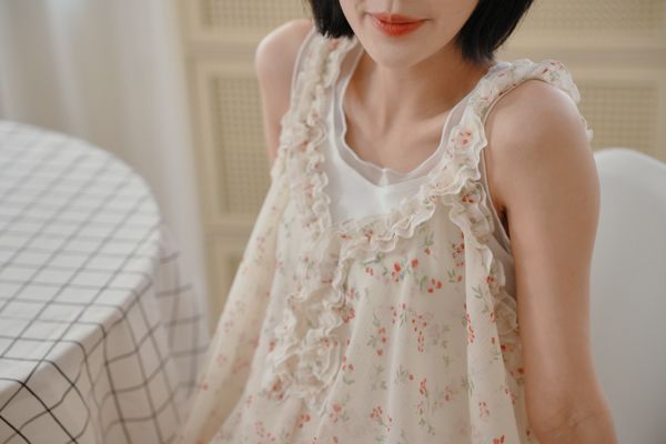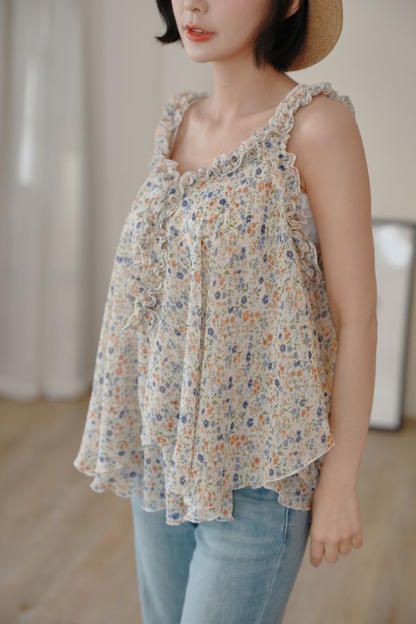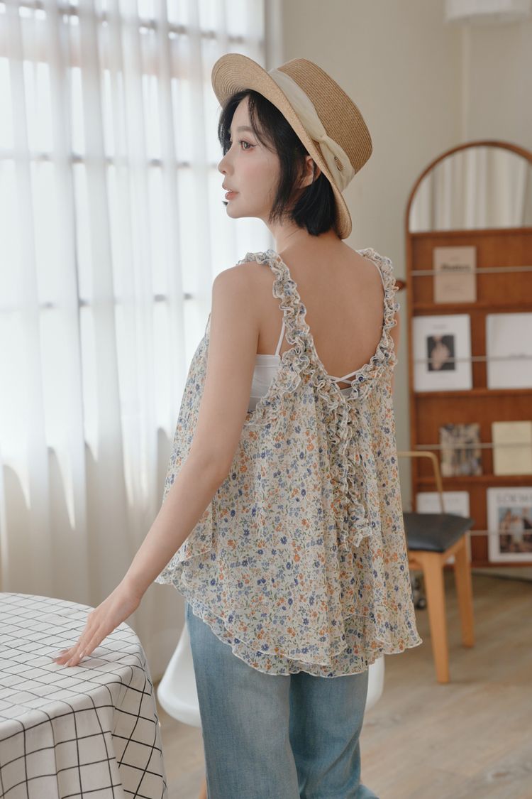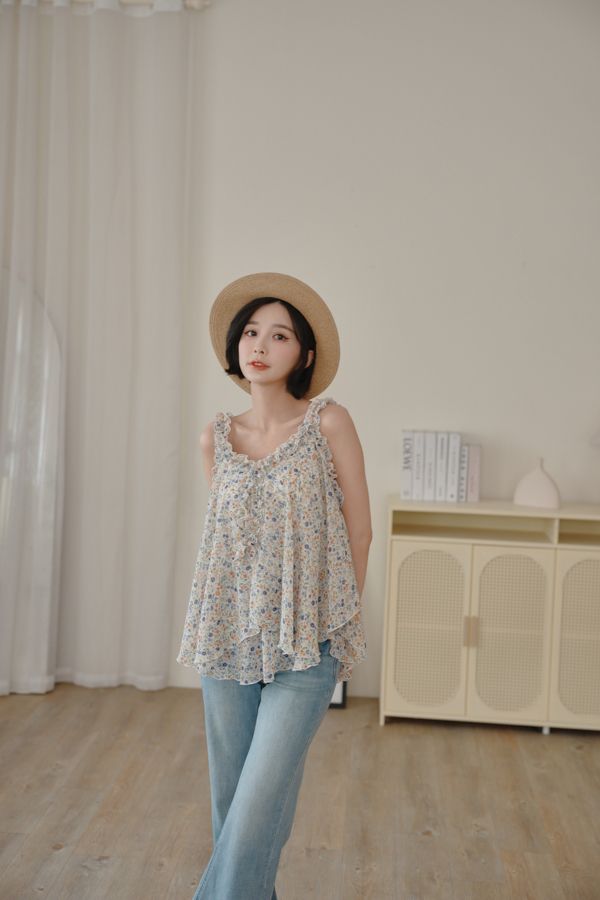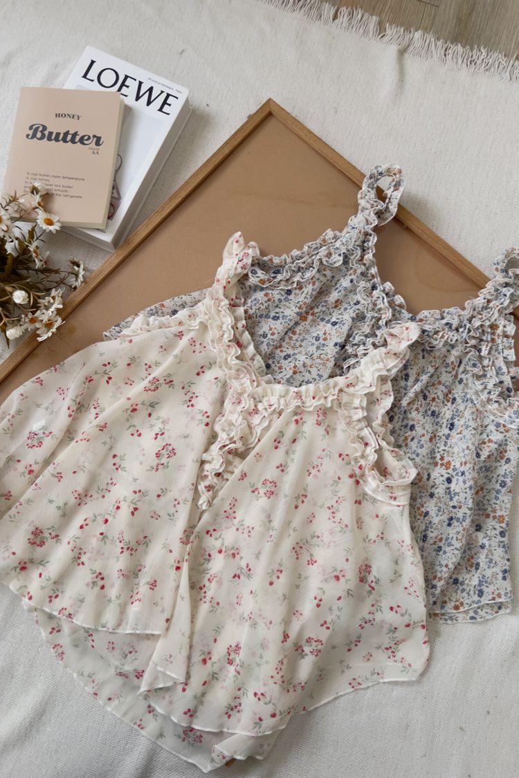 春感小碎花荷葉背心上衣*2色