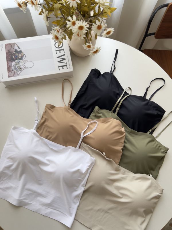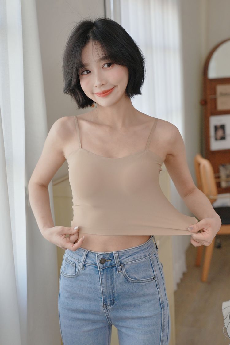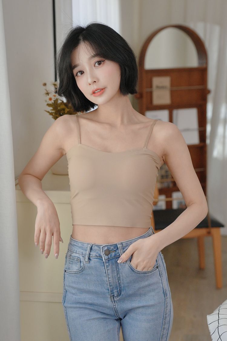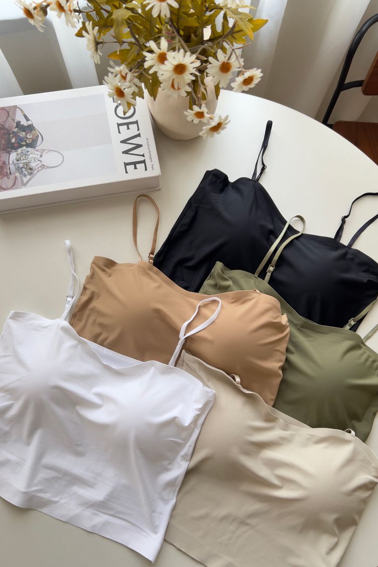 【限量現貨】涼感平口細肩Bra Top(固定杯/肩帶可調)*5色