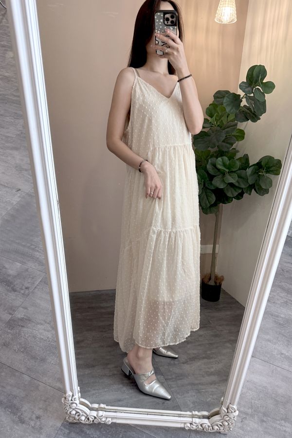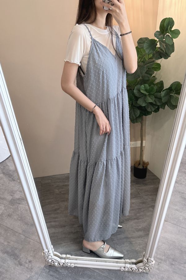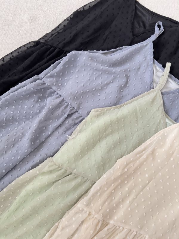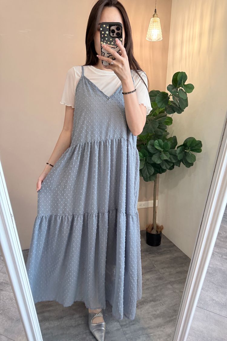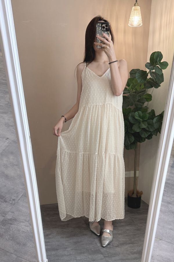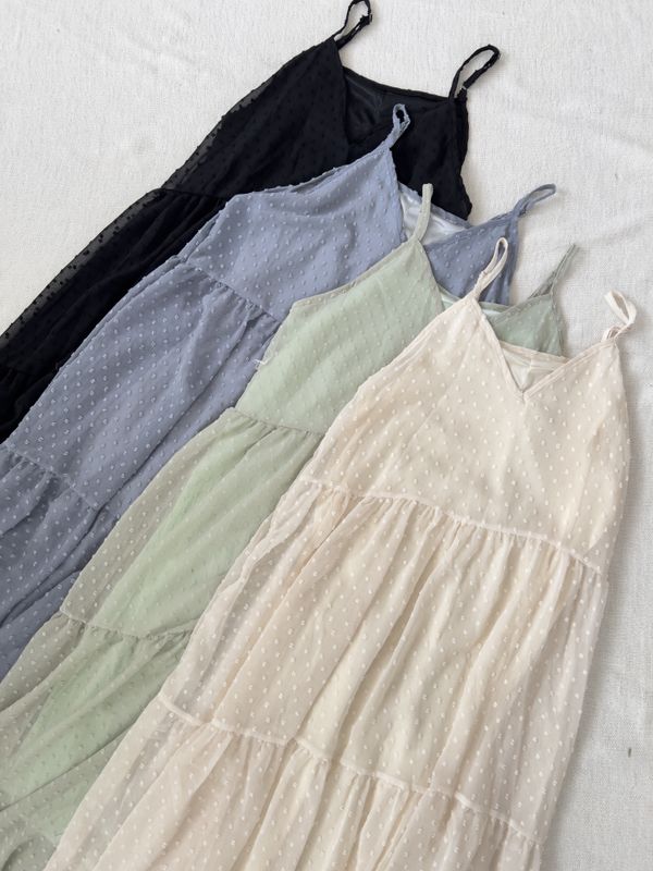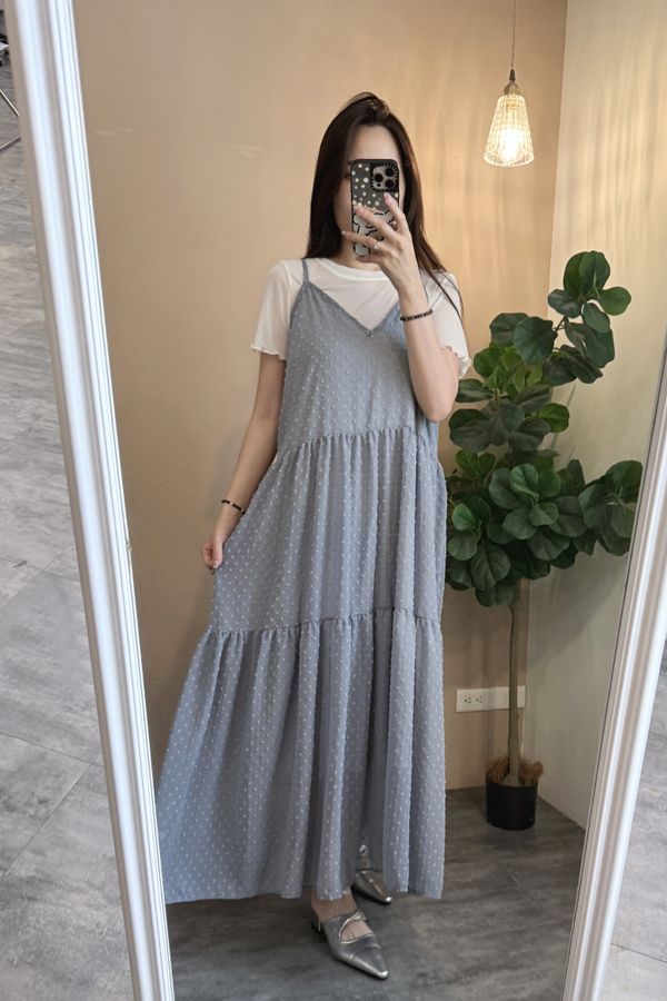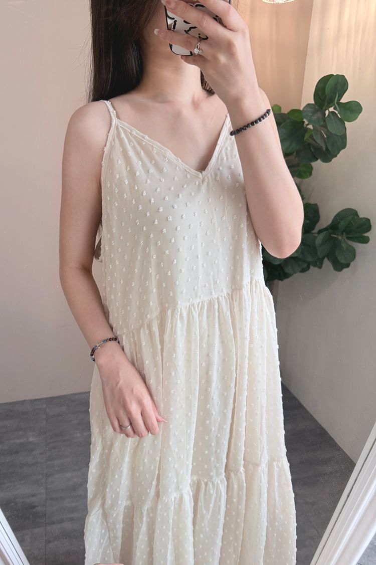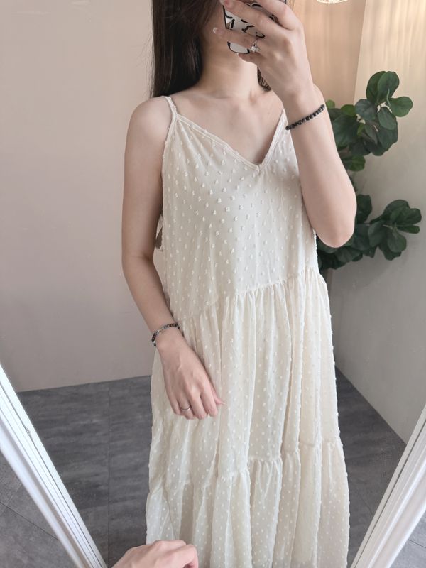 立體點點V領飄逸細肩長洋*4色