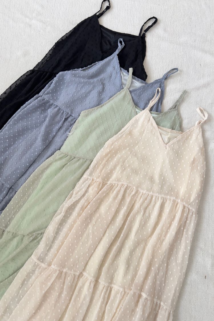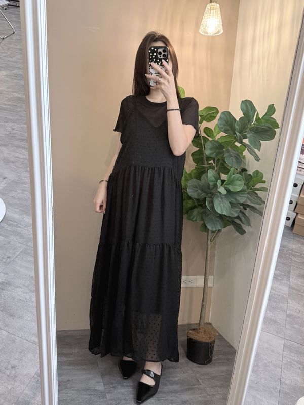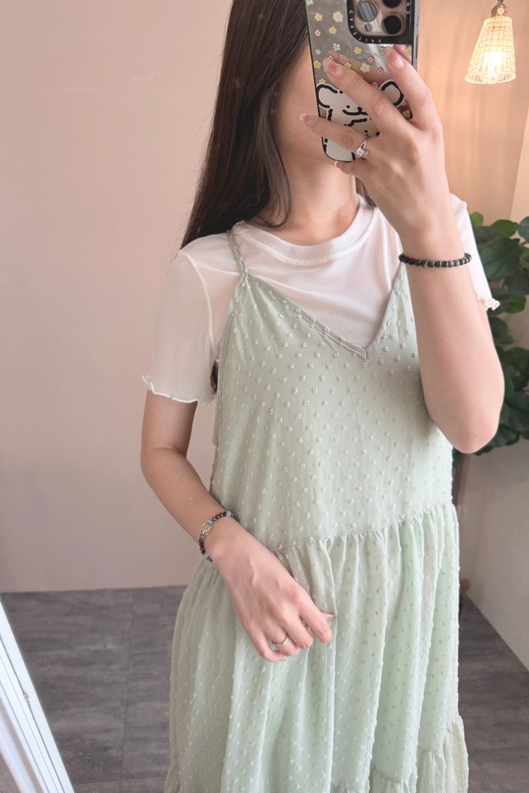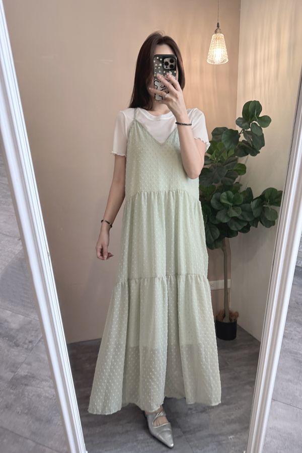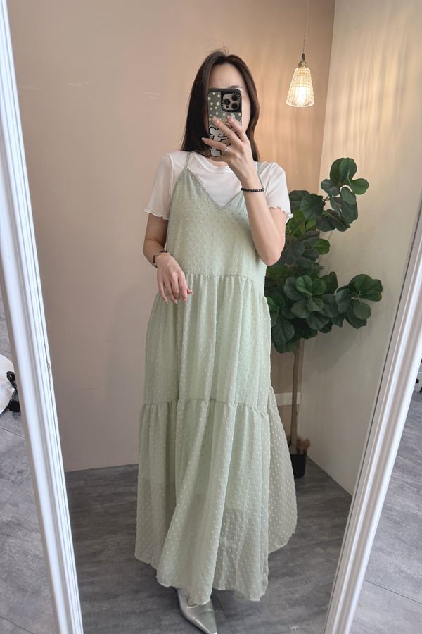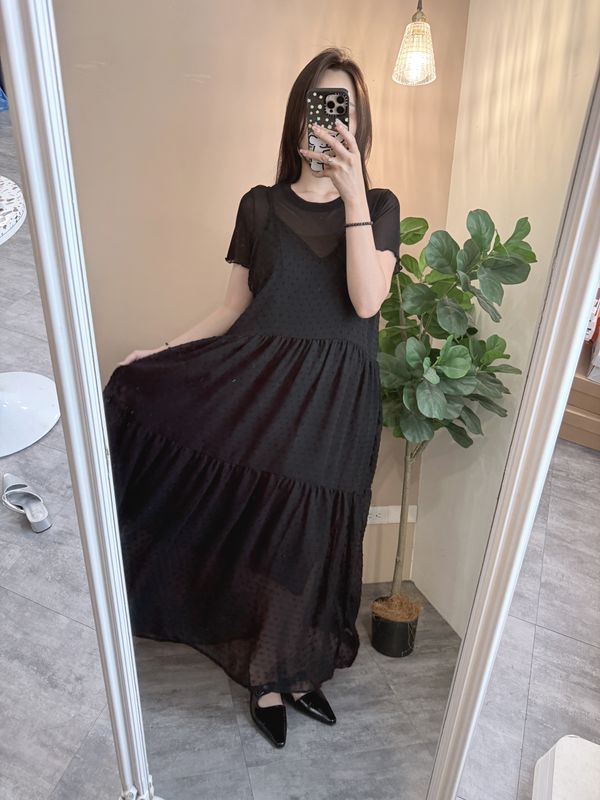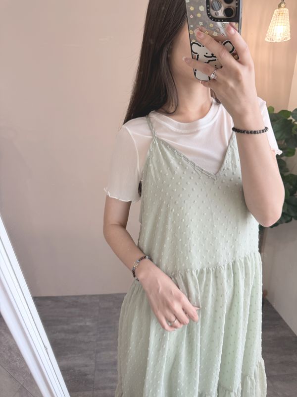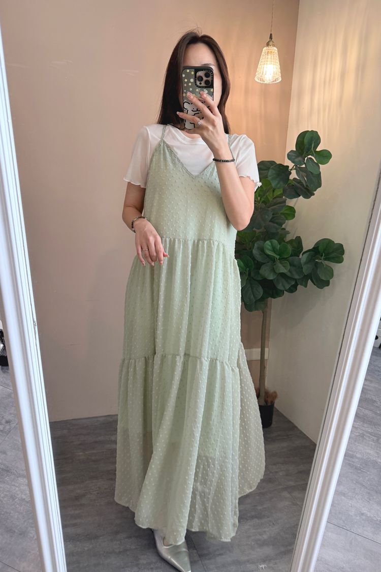 立體點點V領飄逸細肩長洋*4色