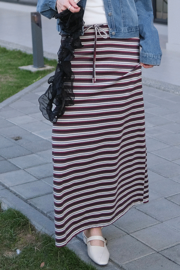 QQ棉彈性條紋抽繩長裙*3色