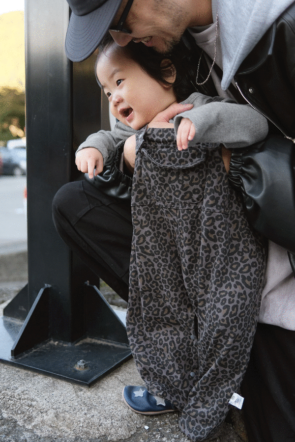 【日本】豹紋吊帶褲套組-小童(灰上衣+深灰吊帶包屁褲)