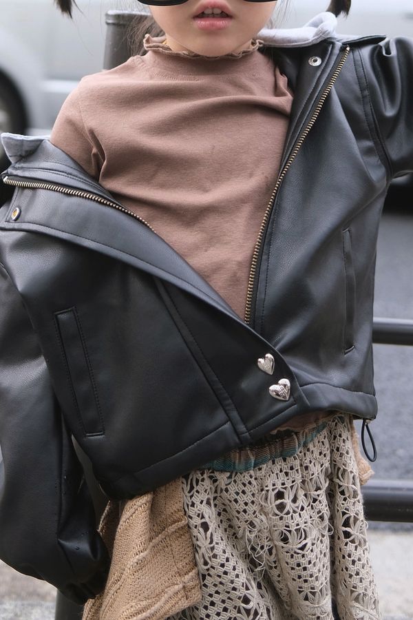 【日本】H自訂-質感愛心釦翻領皮外套(幼童/帽子可拆)