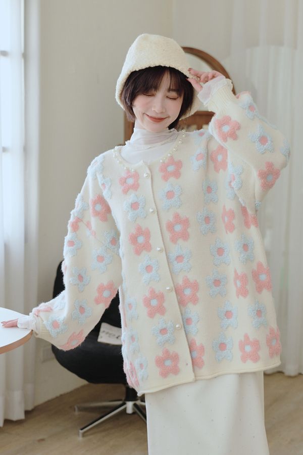 蓬鬆感顆粒絨大口袋針織外套*4色