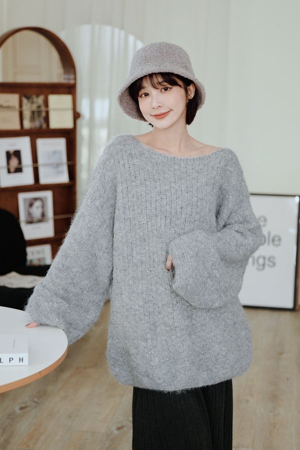 韓系一字領針織上衣*3色