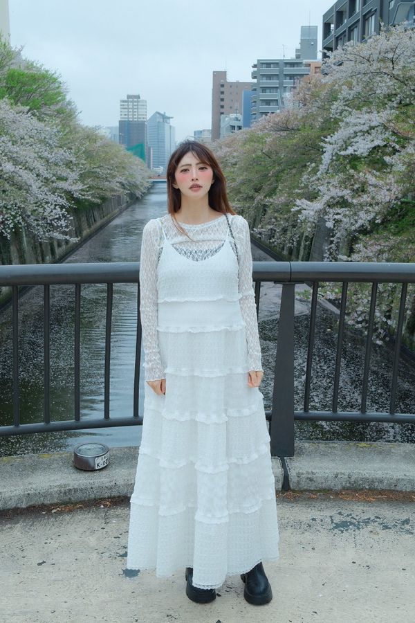 立體花邊蕾絲細肩長洋*1色