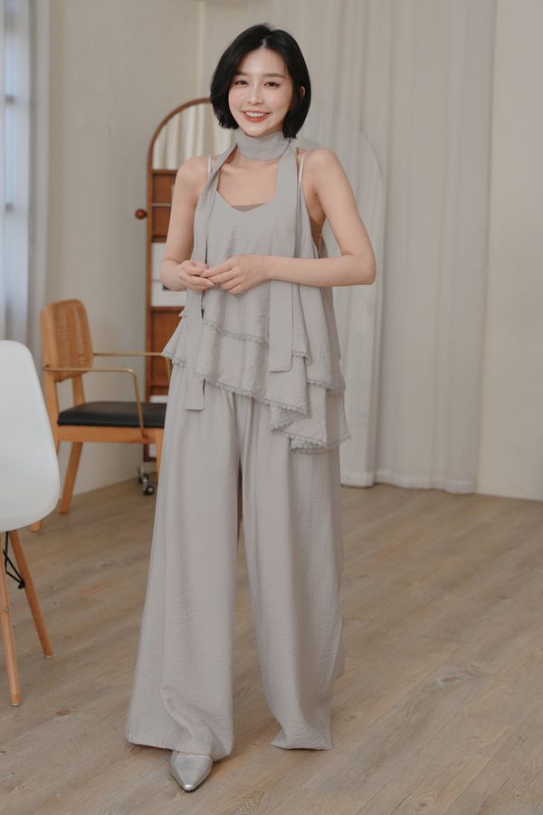 韓系質感細肩套裝(細肩上衣+寬褲+綁帶)*3色
