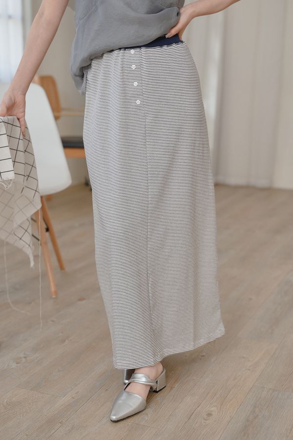 可愛小花釦條紋鬆緊長裙*2色