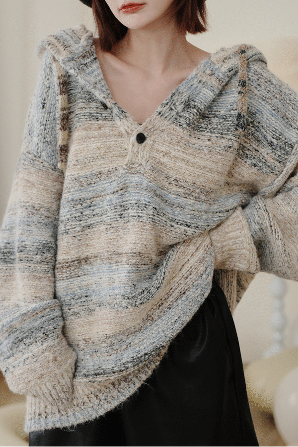 復古刷色慵懶連帽針織上衣/短洋(下身失蹤)