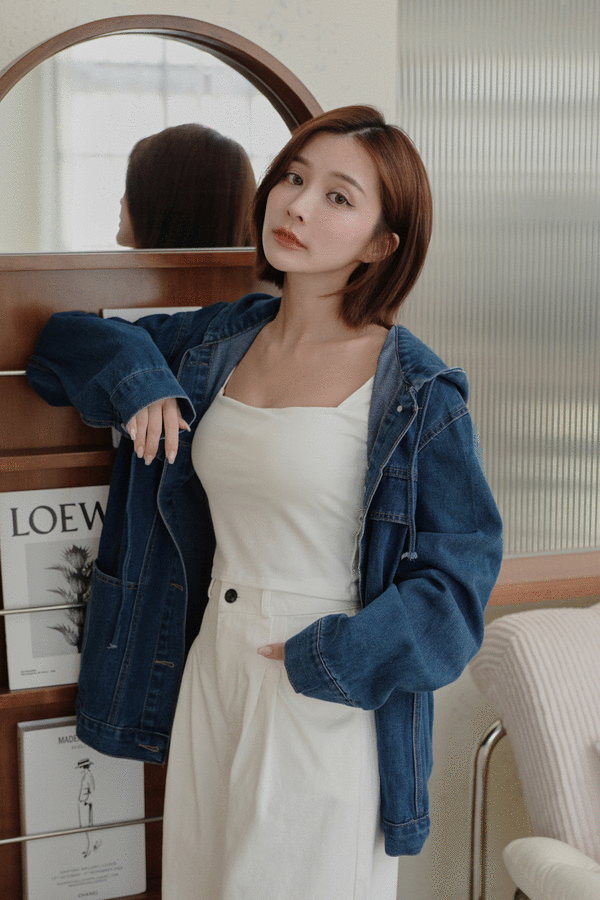 【限量現貨】連帽壓扣牛仔背心(有口袋)