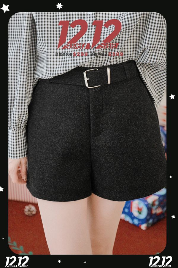 【雙12】冬季基本款毛呢短褲(附同色系皮帶)*4色