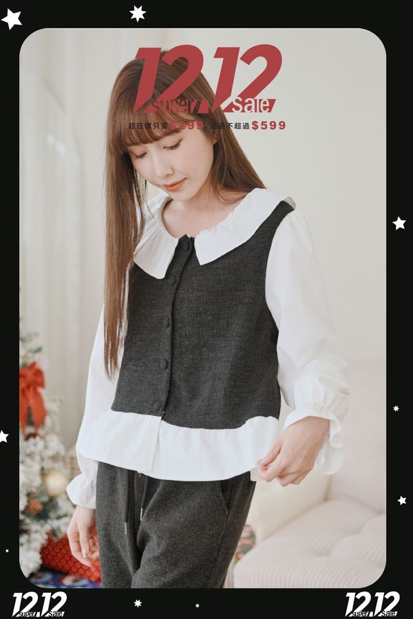 【雙12】甜美布釦假兩件上衣*3色