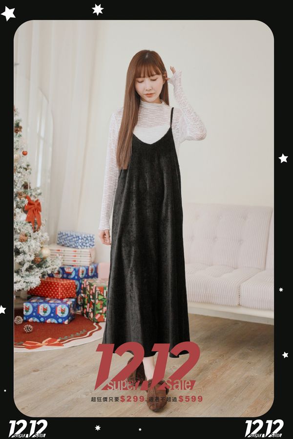 【雙12】氣質純色細肩短絨長洋(肩帶可調)*4色